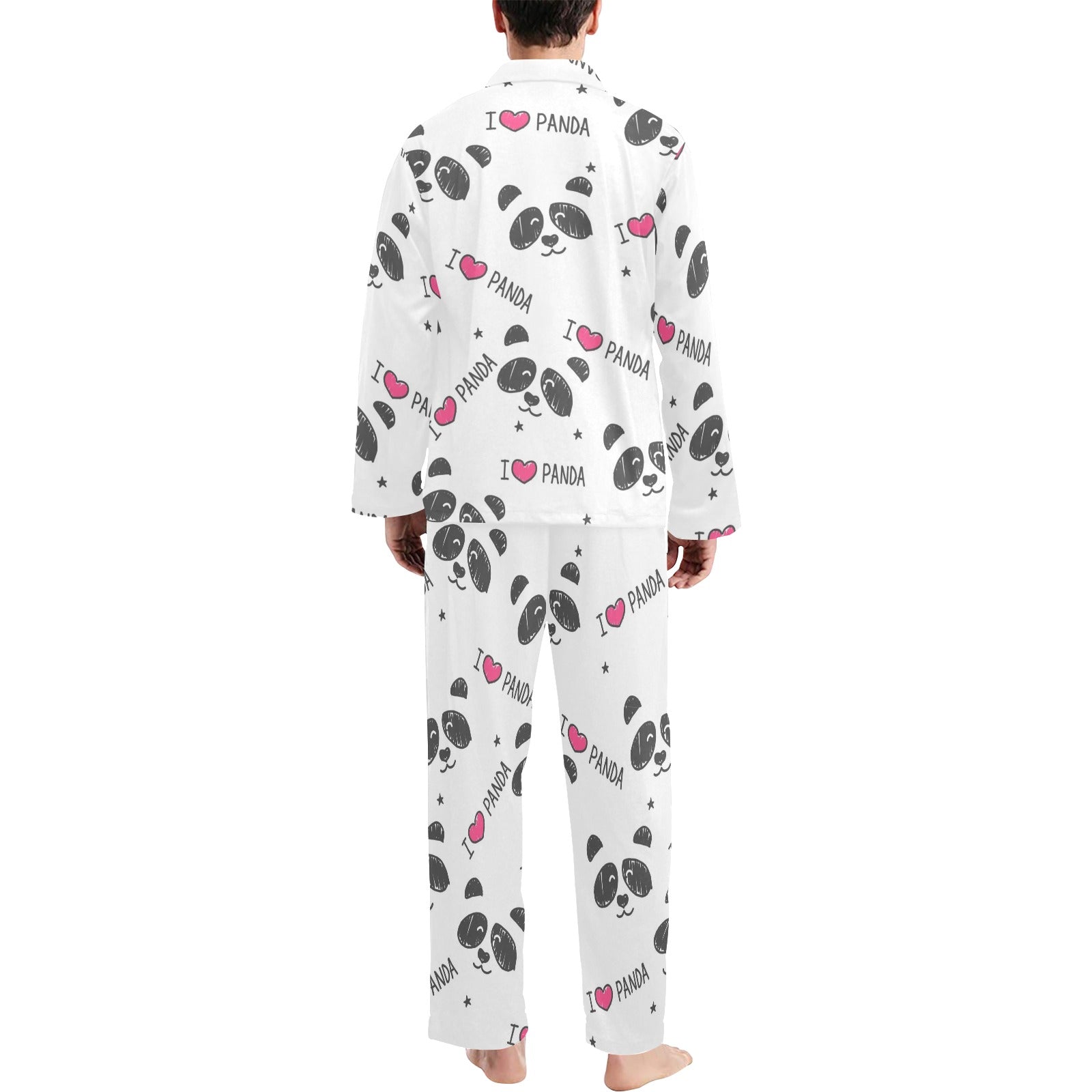 Hand Drawn faces of pandas pattern Men's Long Pajama Set