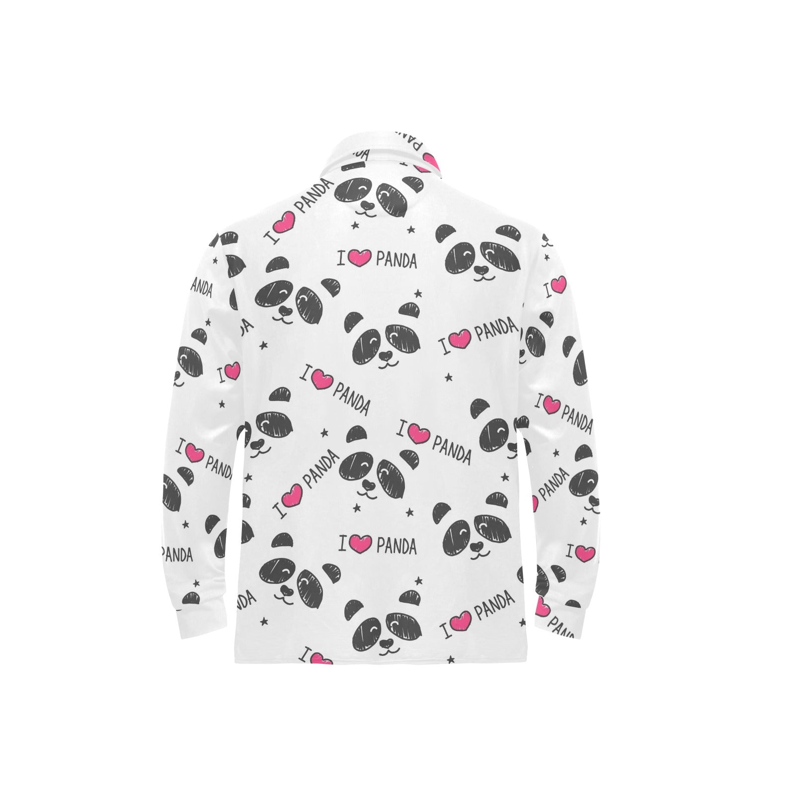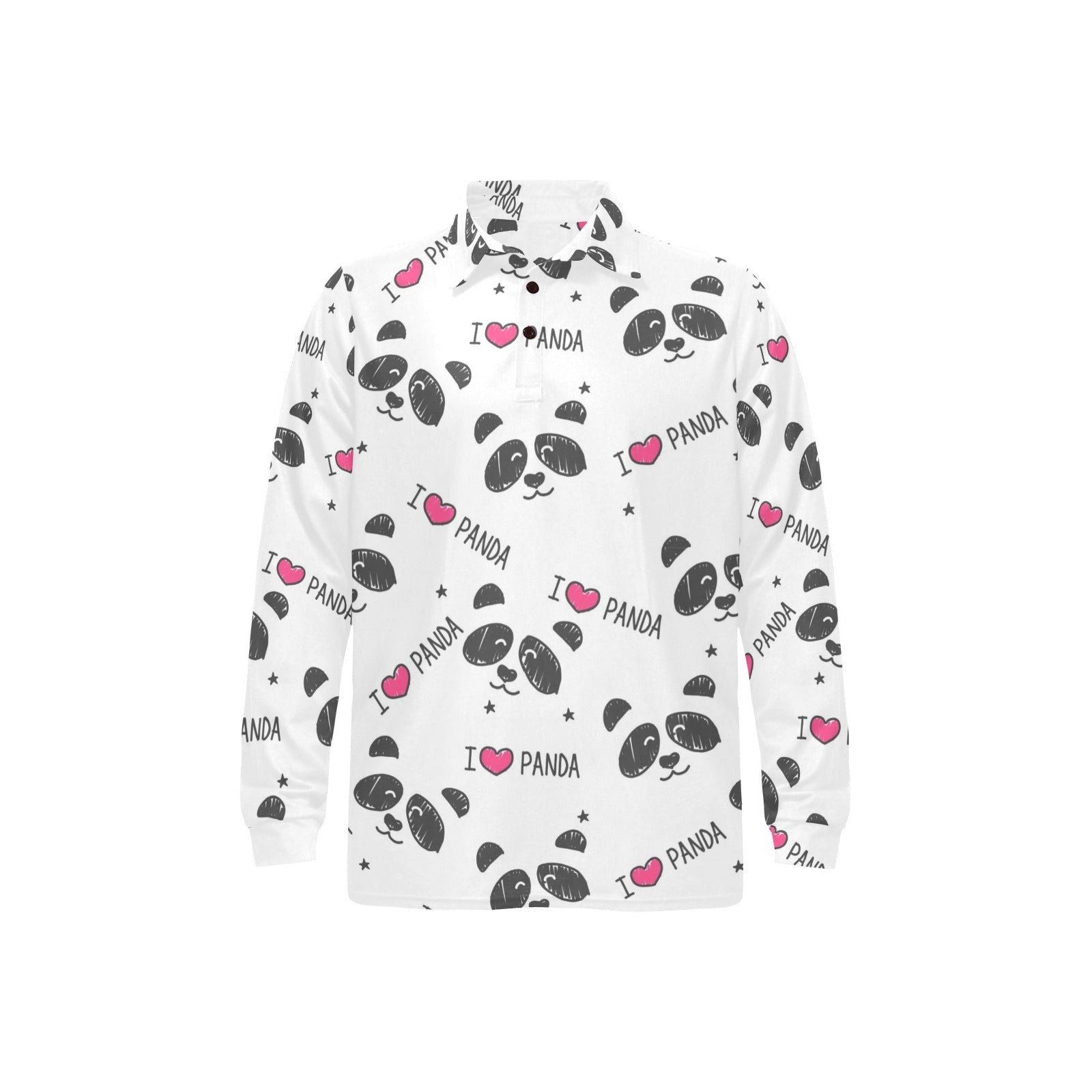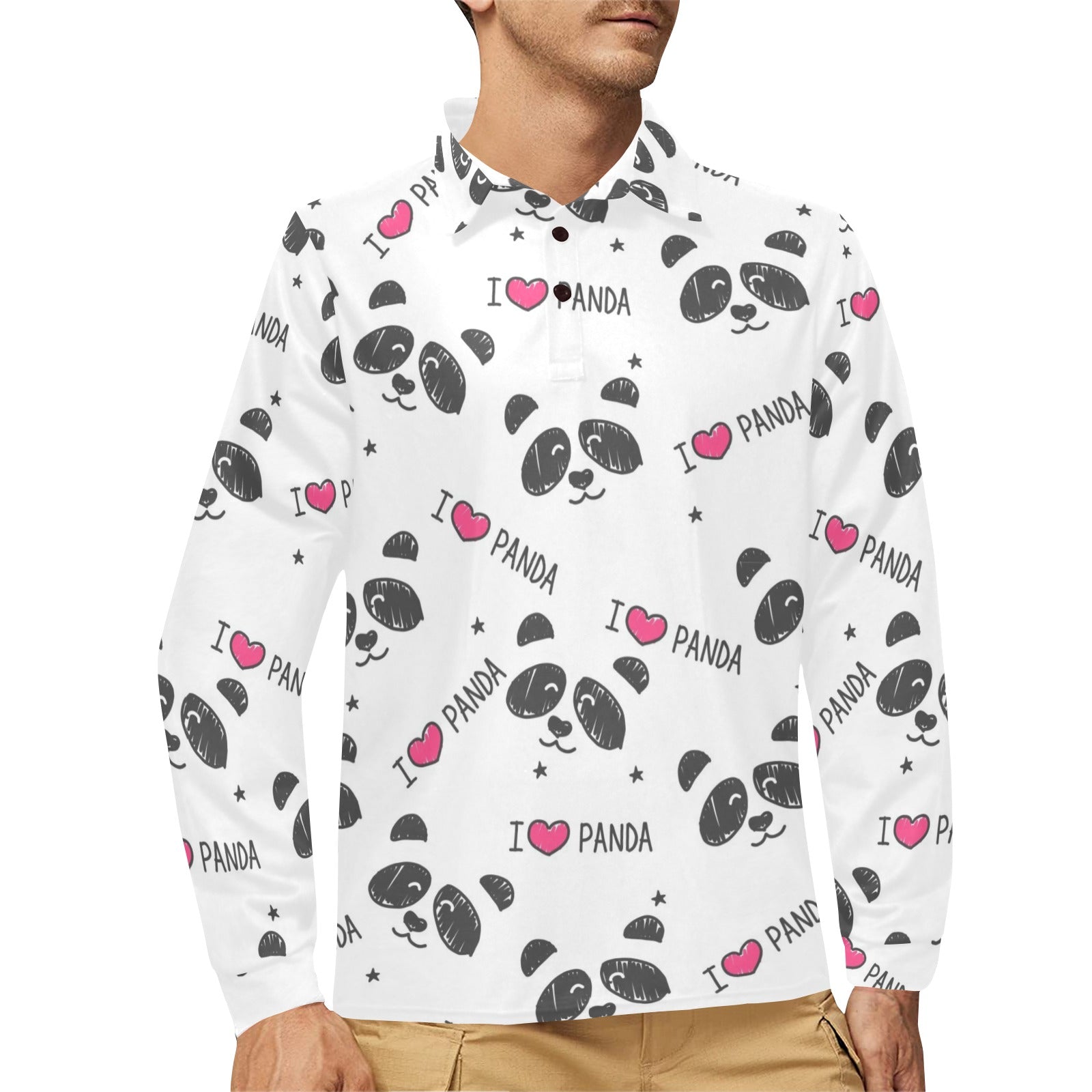 Hand Drawn faces of pandas pattern Men's Long Sleeve Polo Shirt