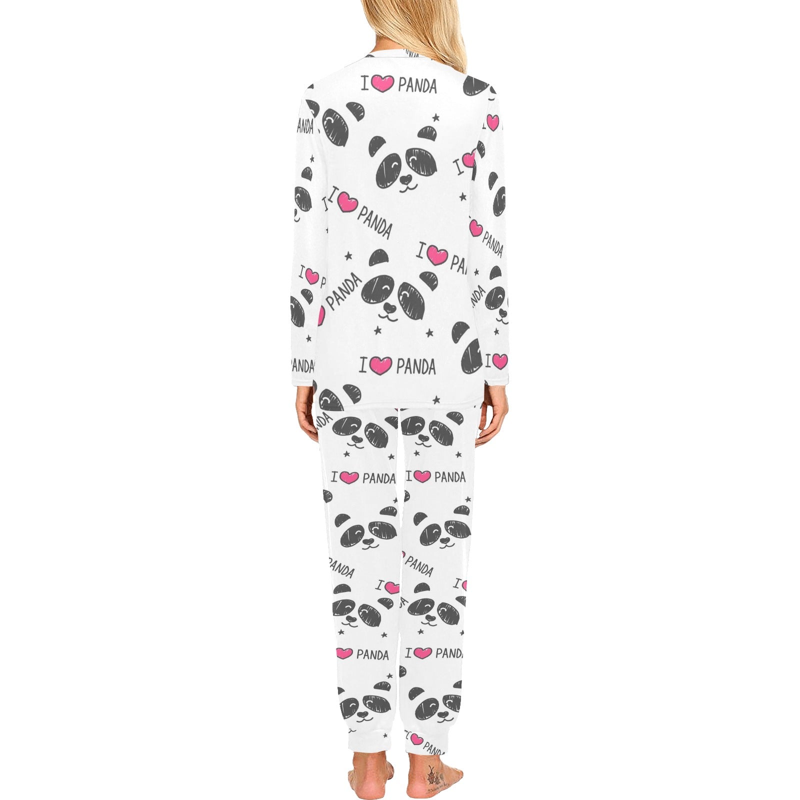 Hand Drawn faces of pandas pattern Women's All Over Print Pajama Set