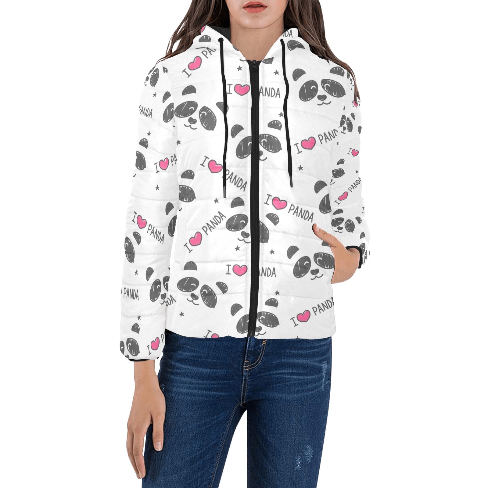 Hand Drawn faces of pandas pattern Women's Padded Hooded Jacket