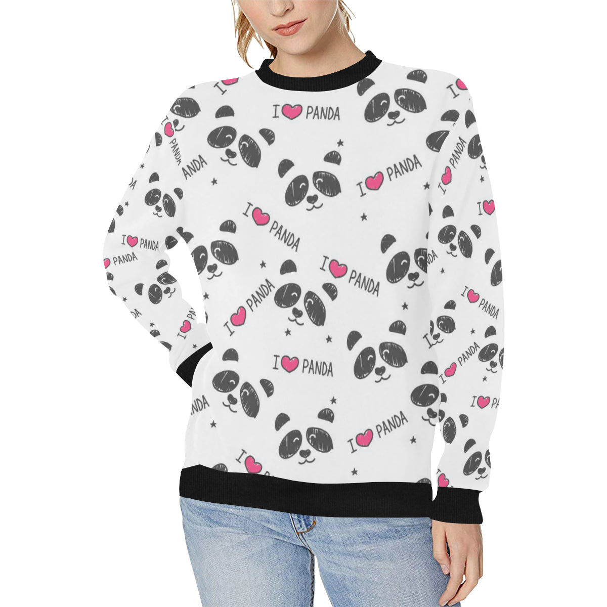 Hand Drawn faces of pandas pattern Women's Crew Neck Sweatshirt