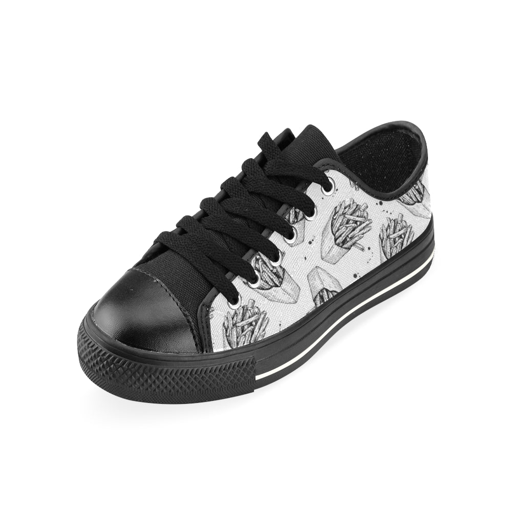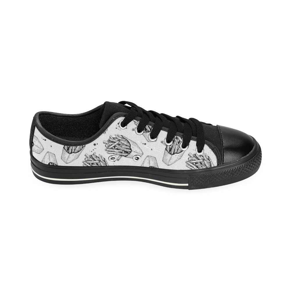 Hand drawn french fries pattern Men's Low Top Canvas Shoes Black