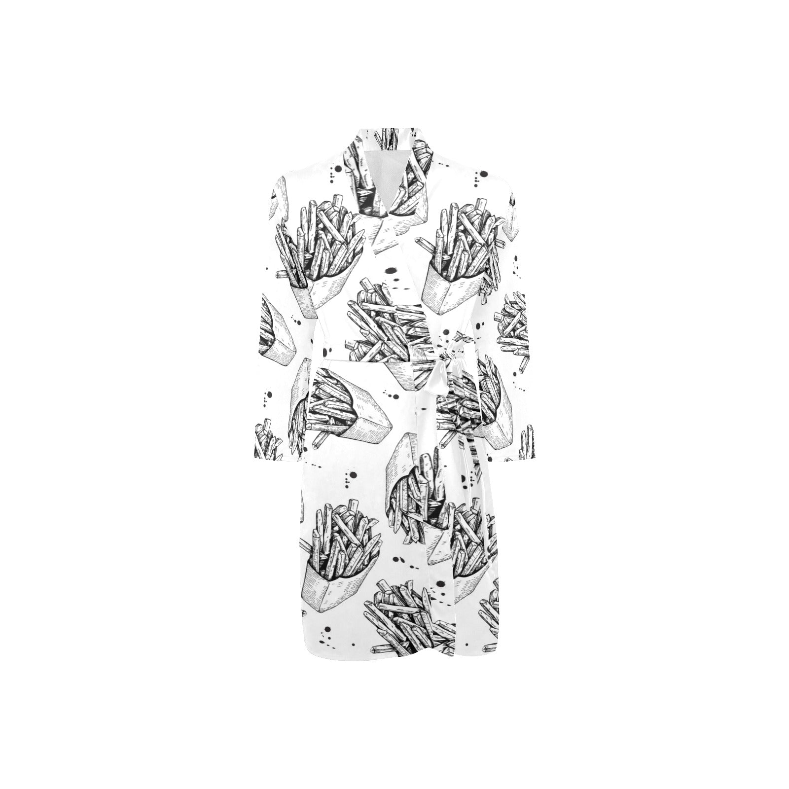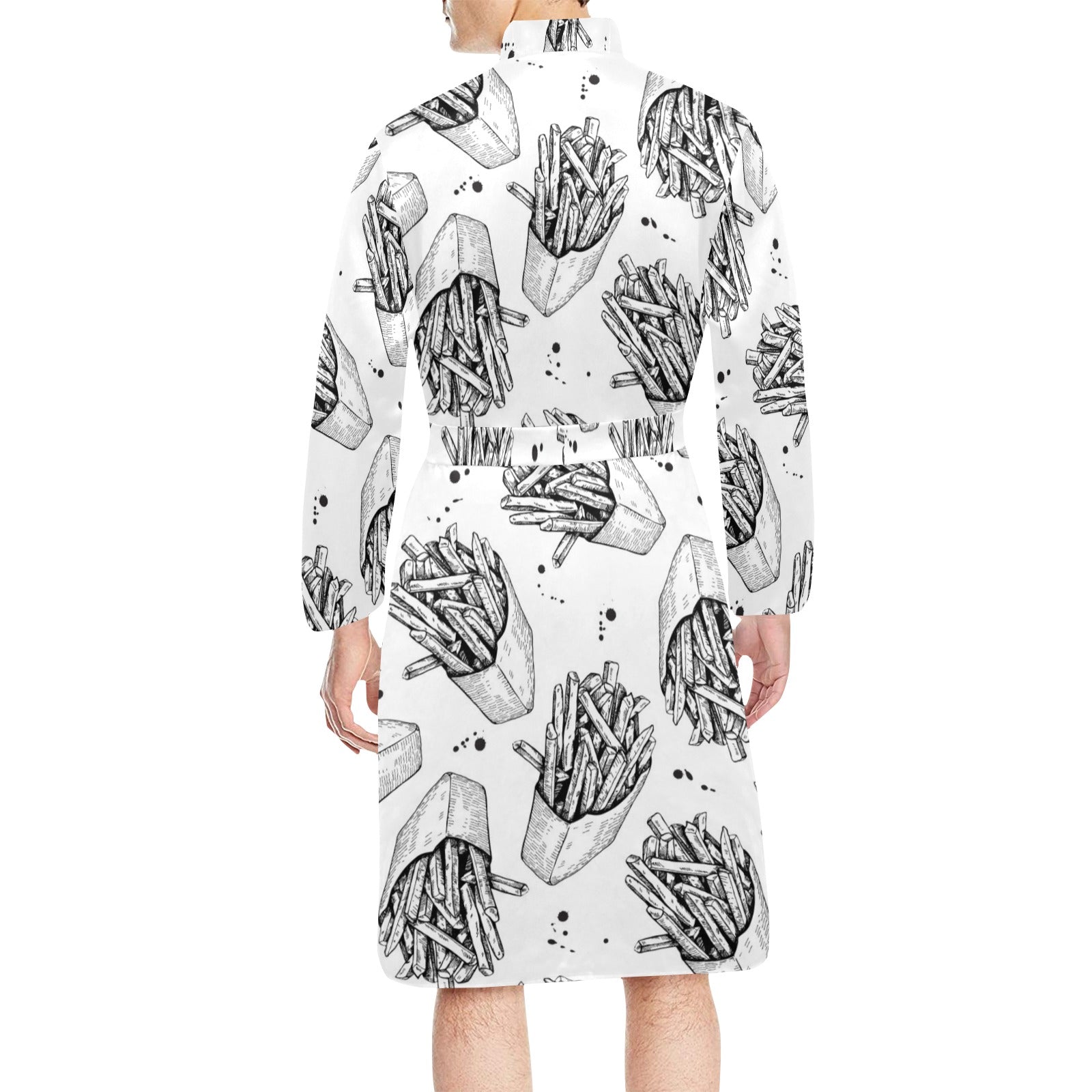 Hand drawn french fries pattern Men's Long Sleeve Belted Night Robe
