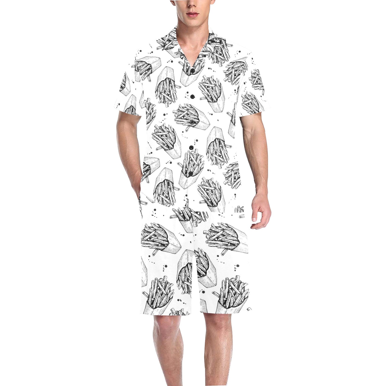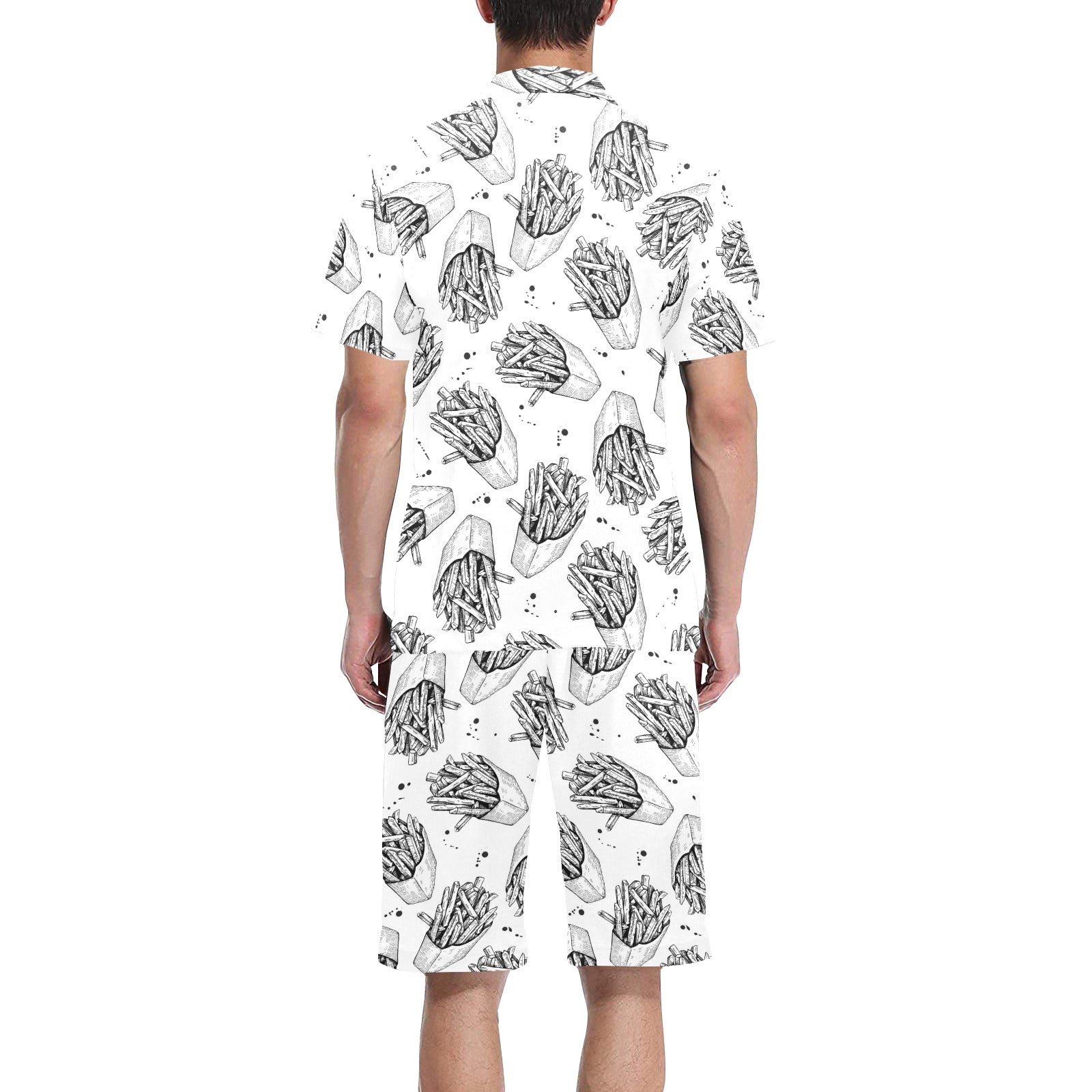 Hand drawn french fries pattern Men's V-Neck Short Pajama Set