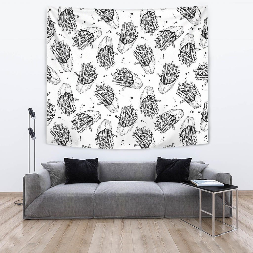 Hand drawn french fries pattern Tapestry is a uniqued design and limited item. It made to order, hand printed, and sewn with love in our factory.