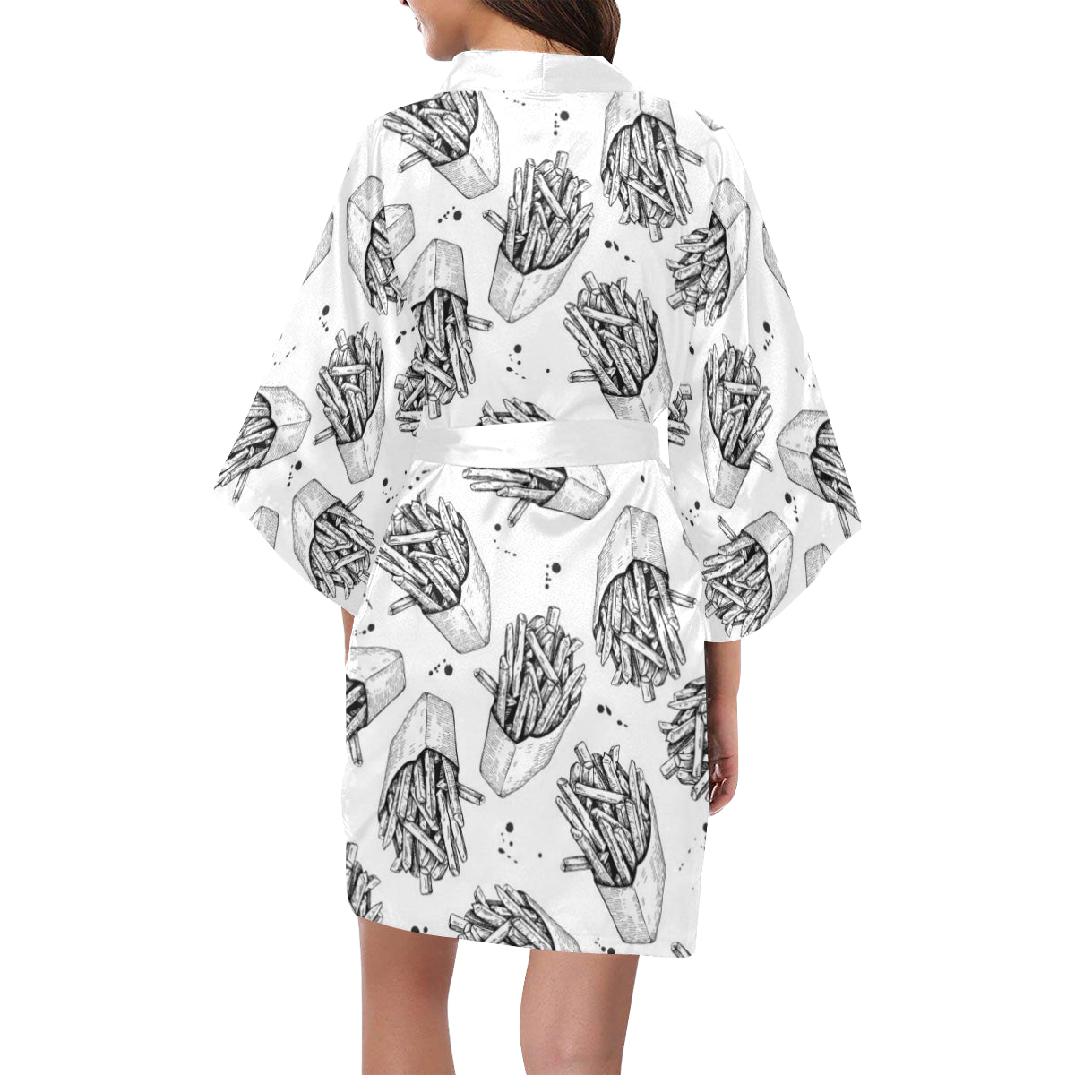 Hand drawn french fries pattern Women's Short Kimono Robe
