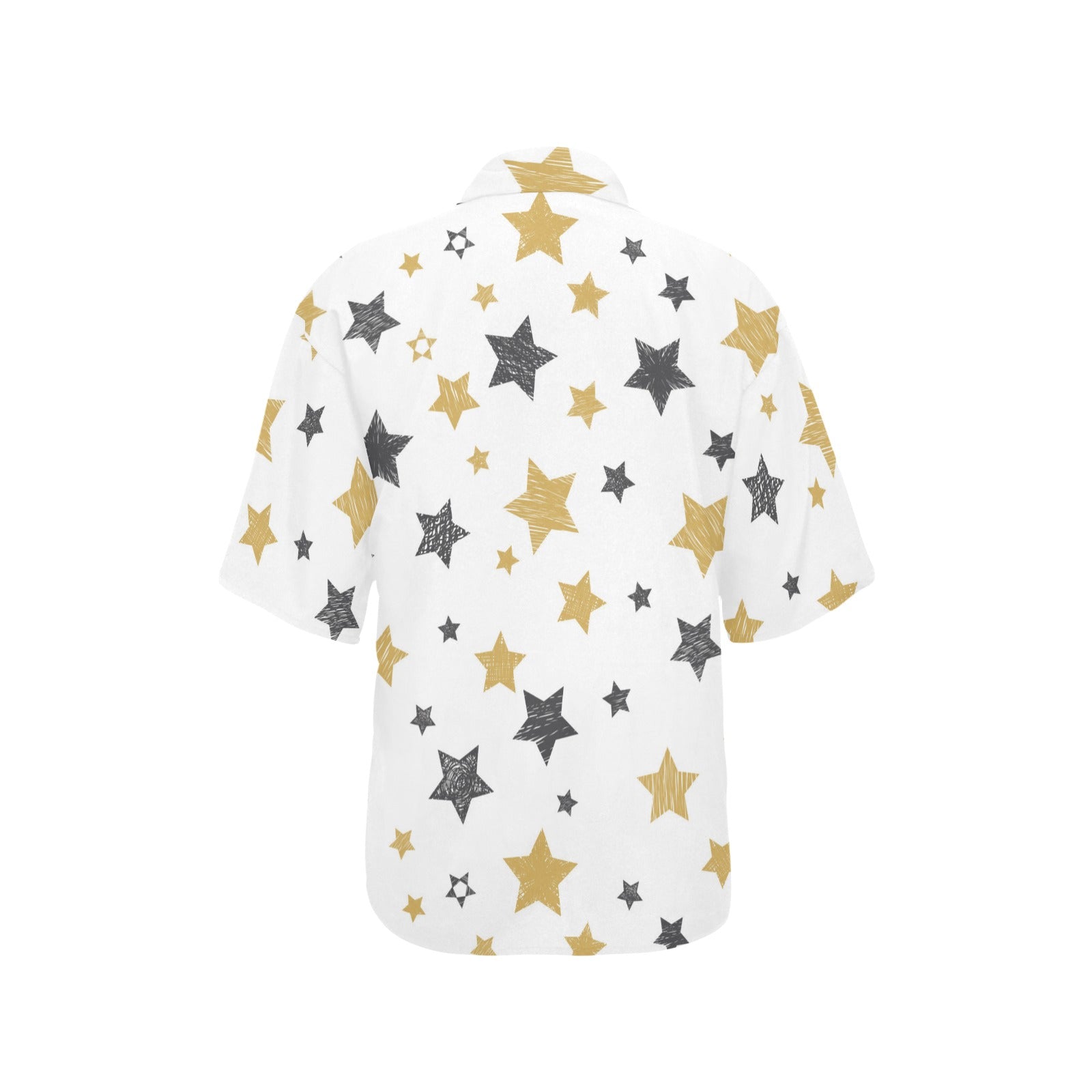 hand drawn gold black star pattern Women's All Over Print Hawaiian Shirt