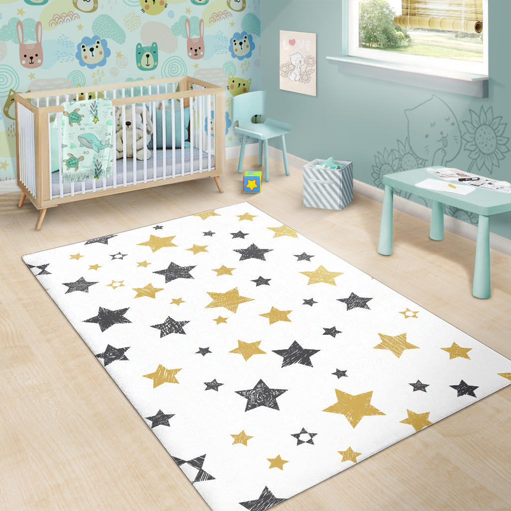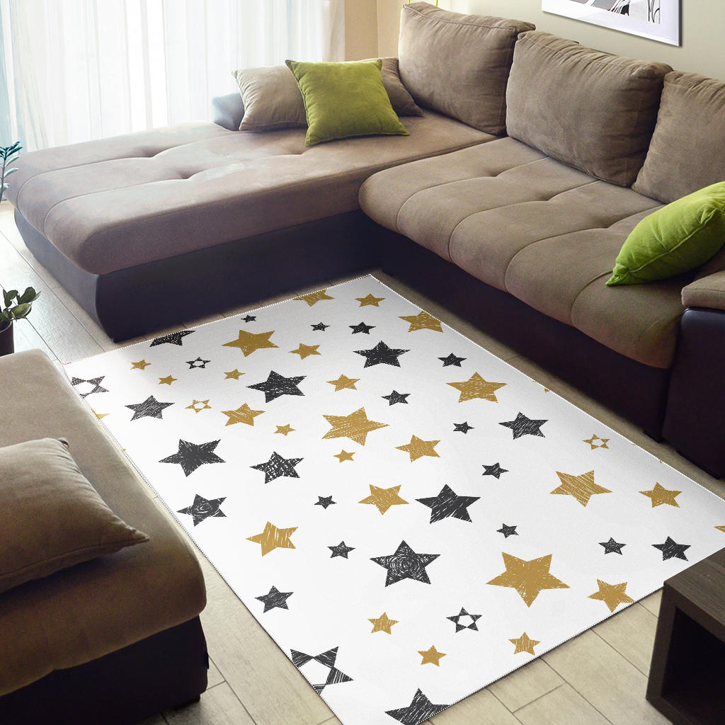 hand drawn gold black star pattern Area Rug is a uniqued design and limited item. It made to order, hand printed, and sewn with love in our factory.