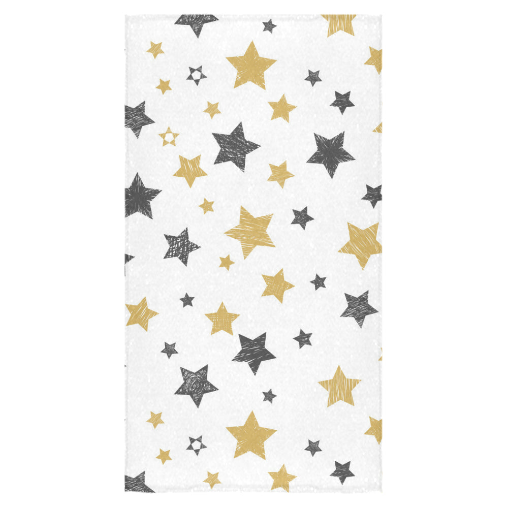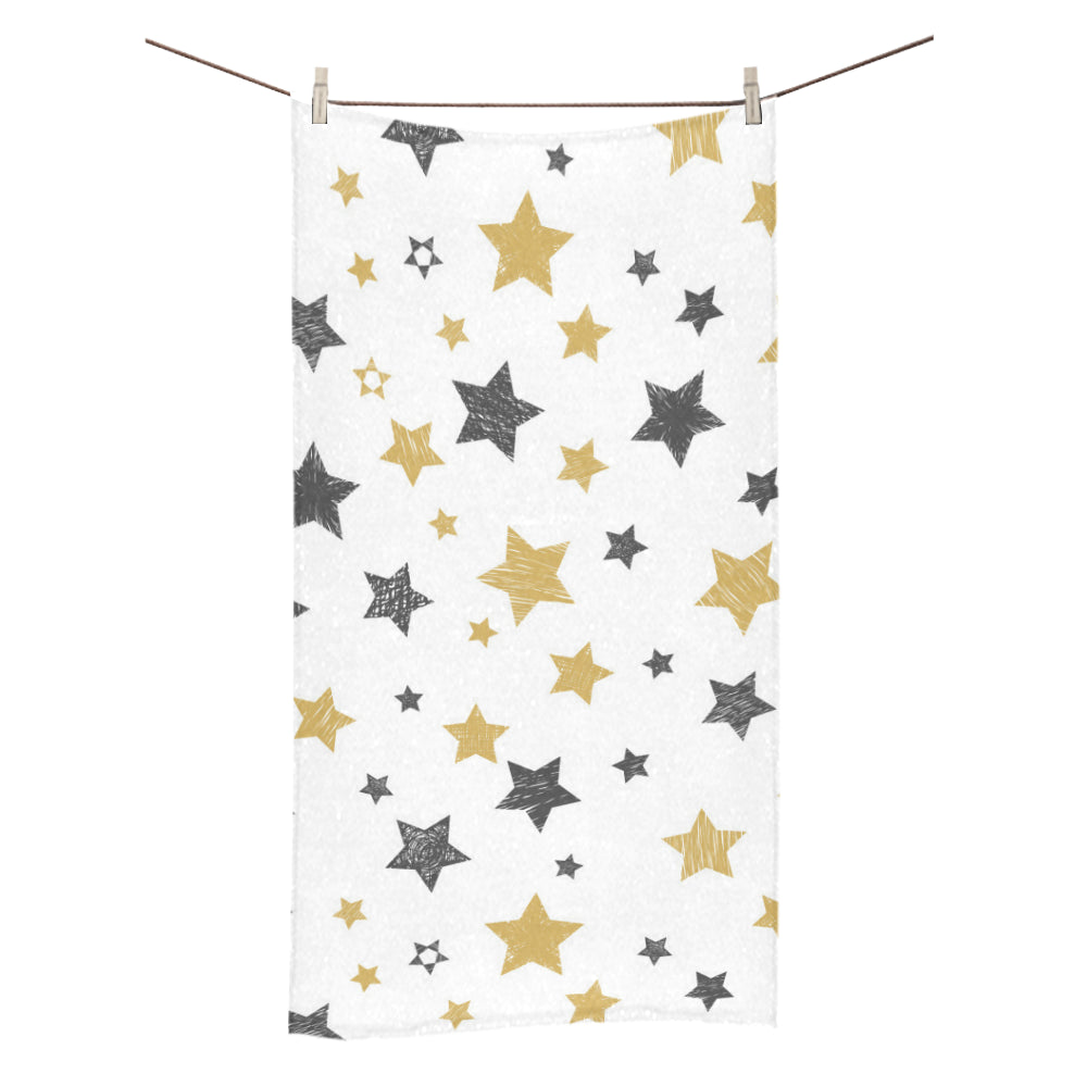 hand drawn gold black star pattern Bath Towel 30"x56" is a uniqued design and limited item. It made to order, hand printed, and sewn with love in our factory.