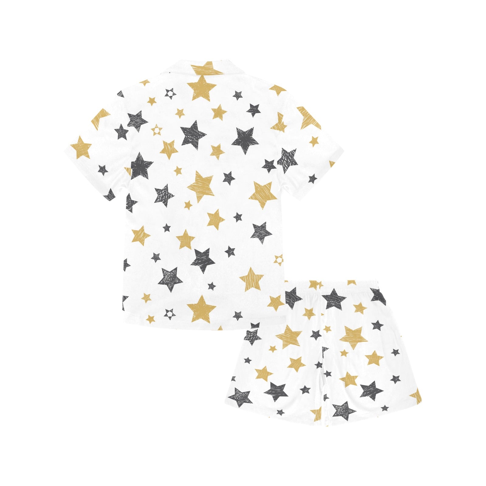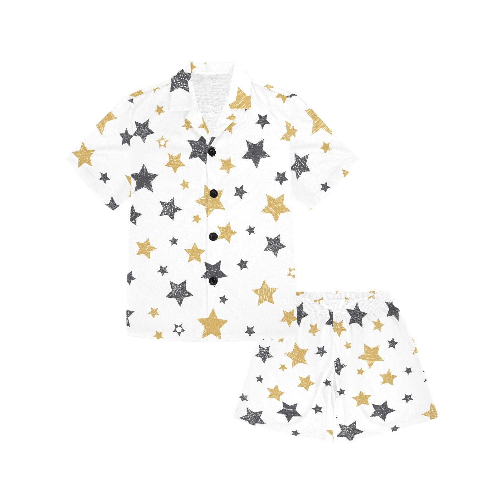hand drawn gold black star pattern Kids' Boys' Girls' V-Neck Short Pajama Set