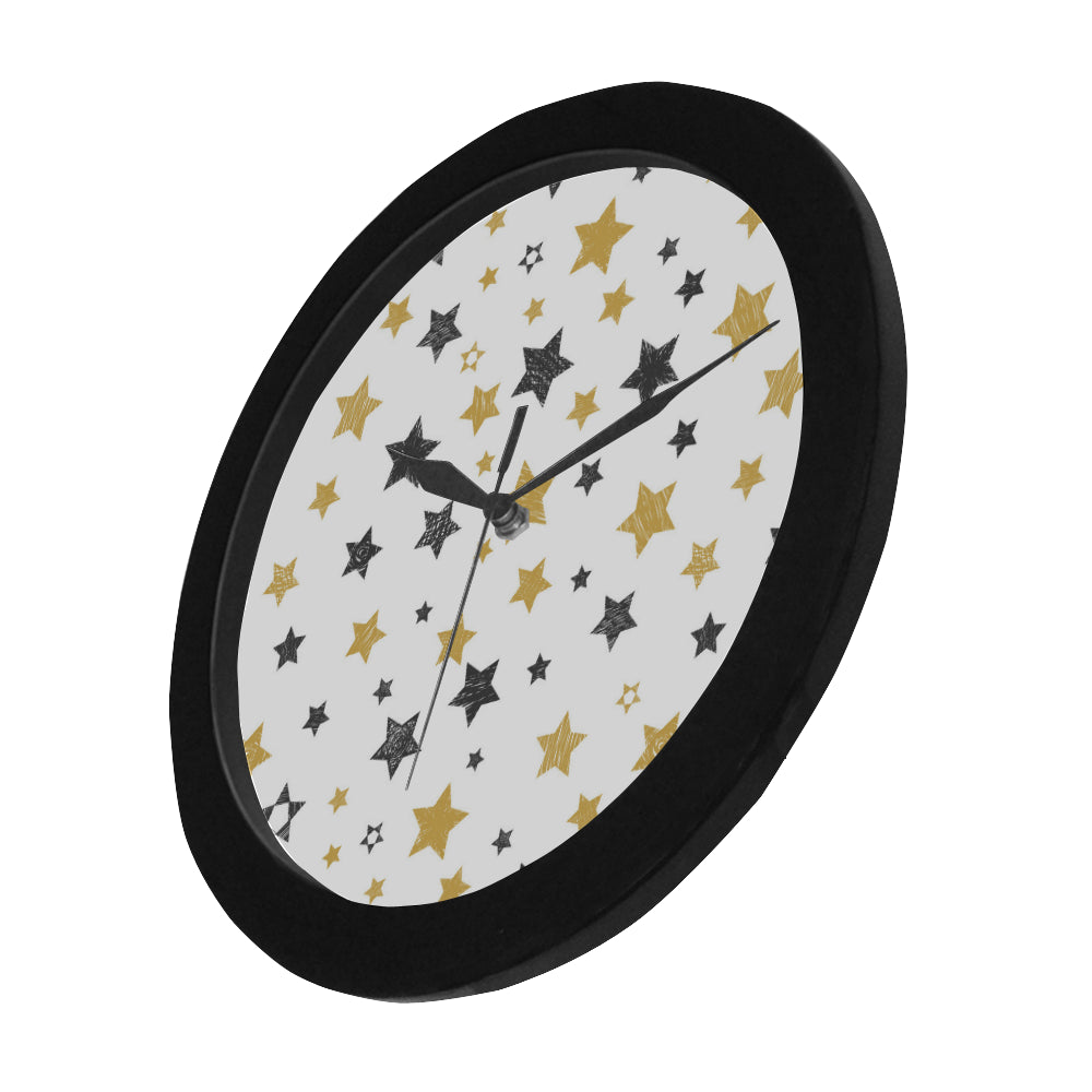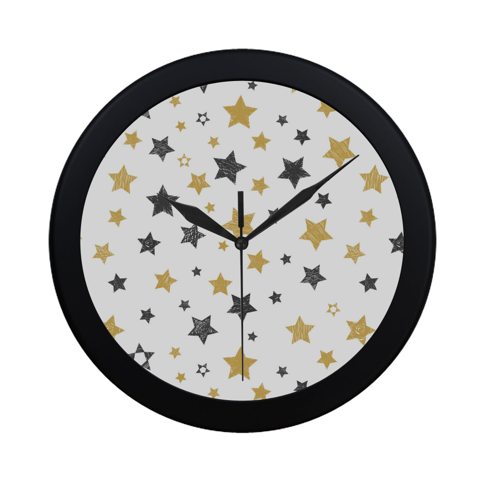 hand drawn gold black star pattern Elegant Black Wall Clock