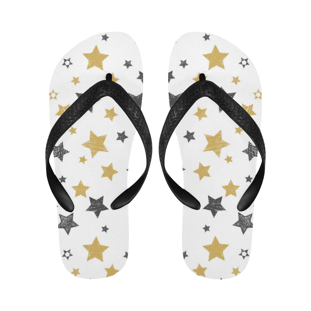 hand drawn gold black star pattern Unisex Flip Flops is a uniqued design and limited item. It made to order, hand printed, and sewn with love in our factory.