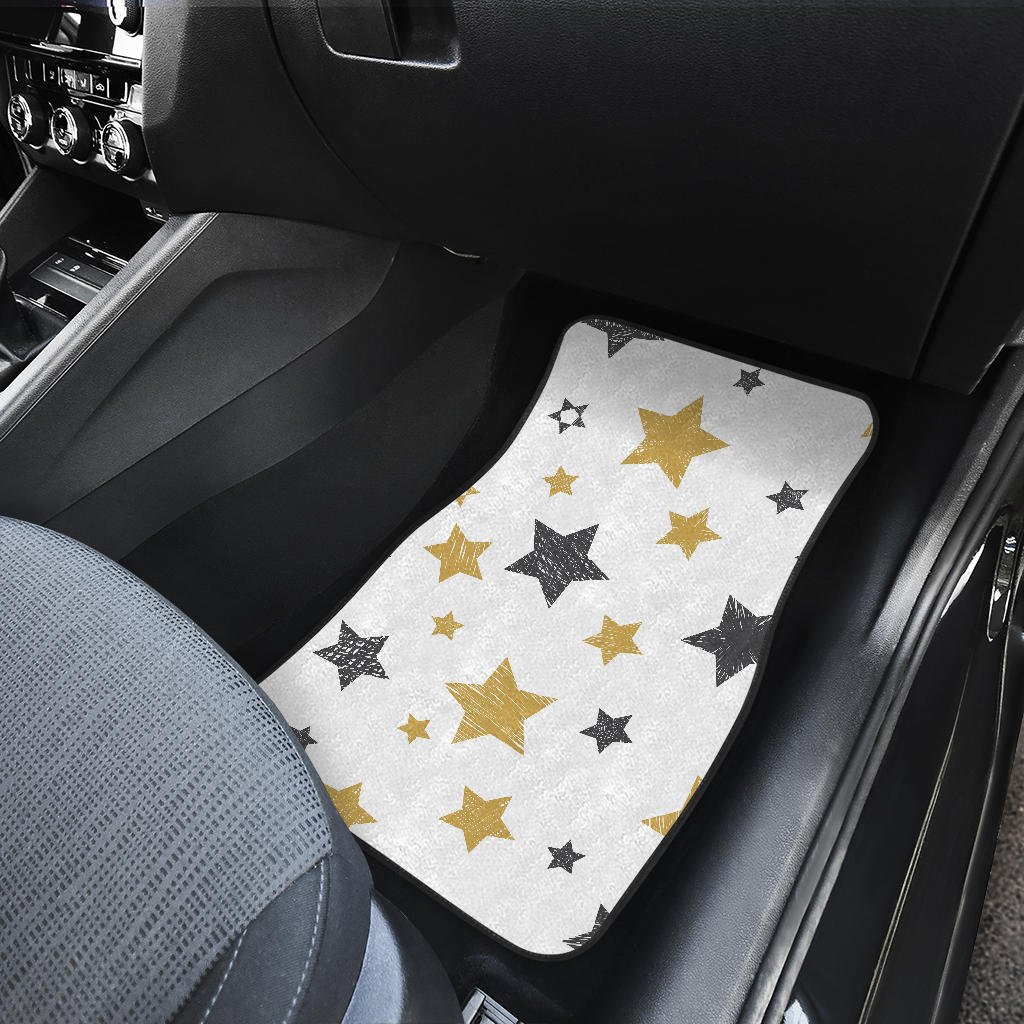 Hand Drawn Gold Black Star Pattern Front And Back Car Mats