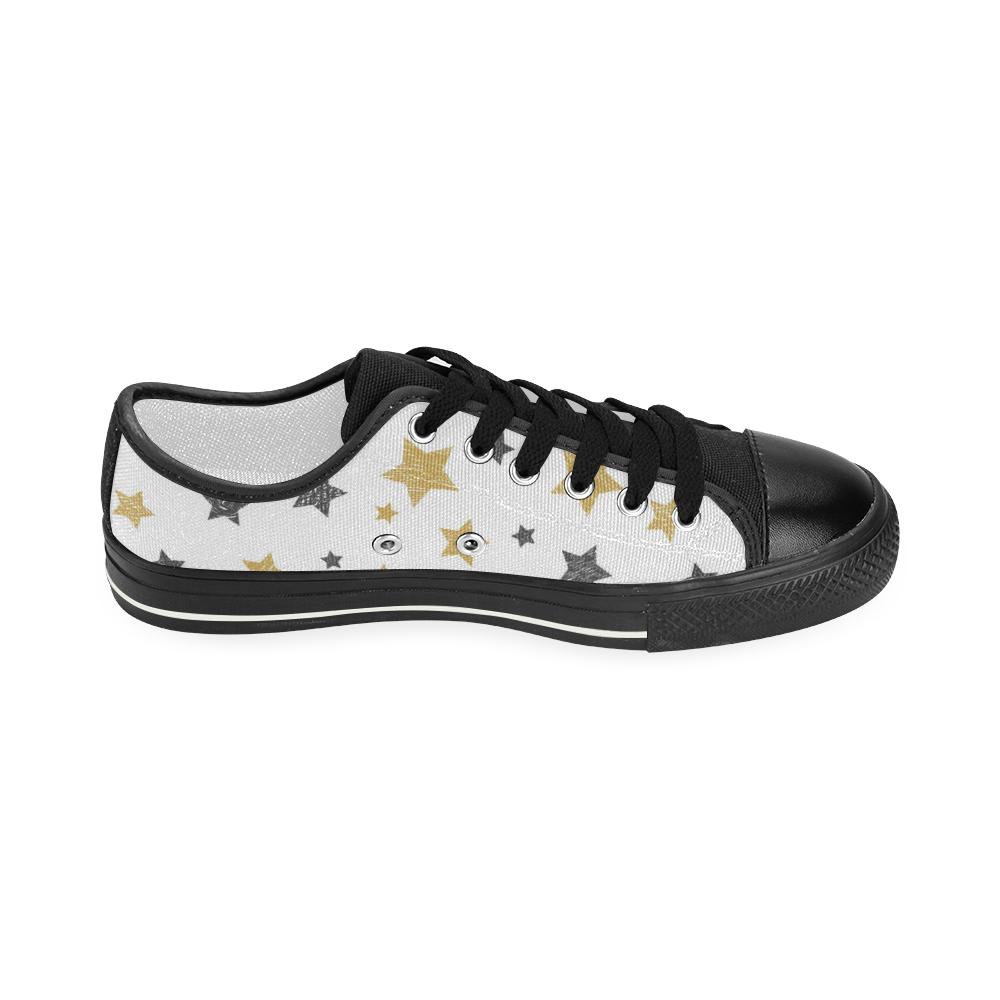 hand drawn gold black star pattern Kids' Boys' Girls' Low Top Canvas Shoes Black
