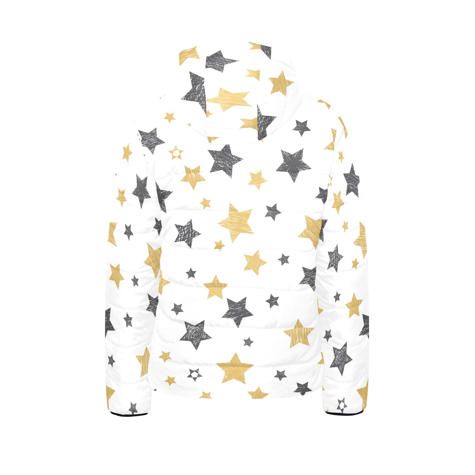 hand drawn gold black star pattern Kids' Boys' Girls' Padded Hooded Jacket