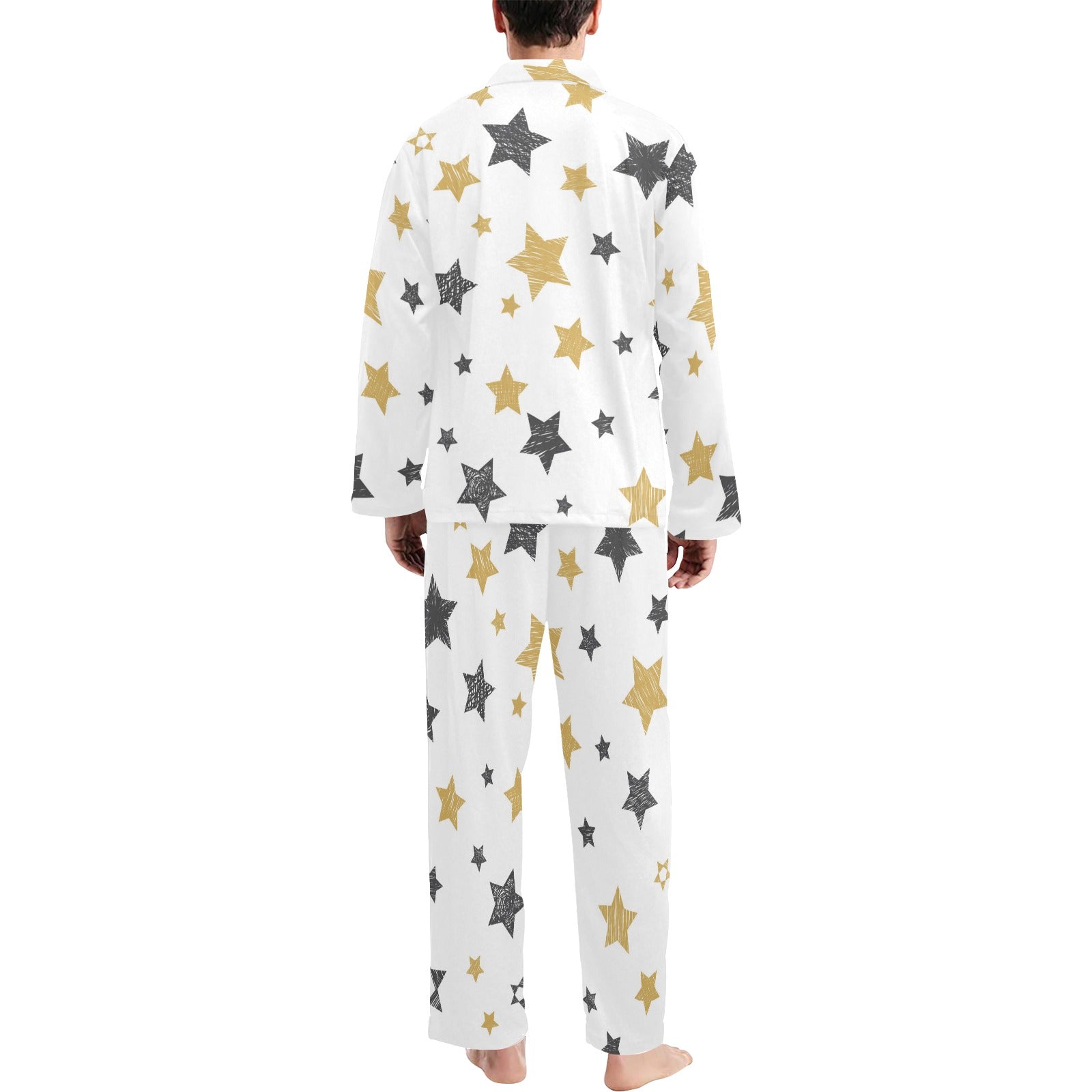 hand drawn gold black star pattern Men's Long Pajama Set