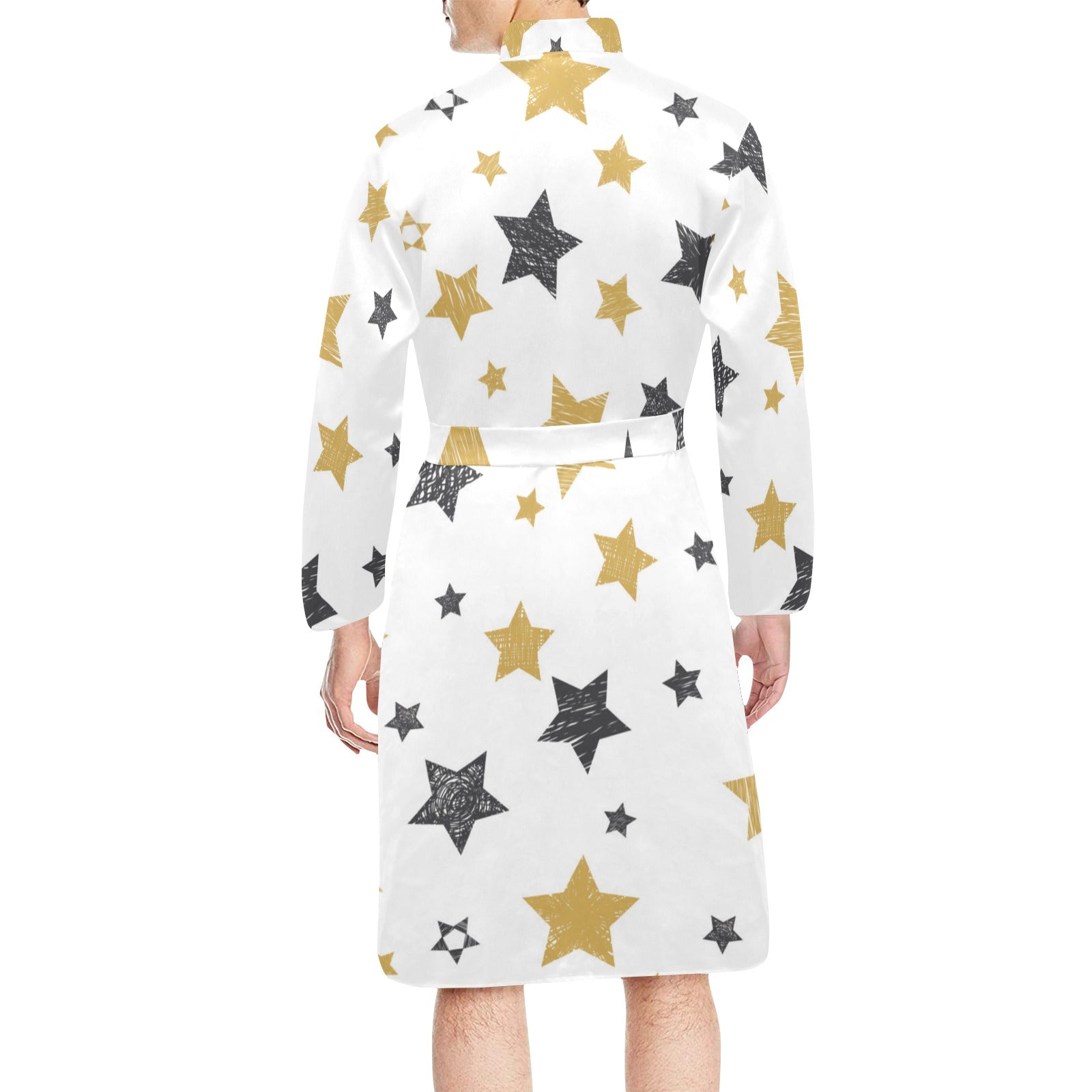 hand drawn gold black star pattern Men's Long Sleeve Belted Night Robe