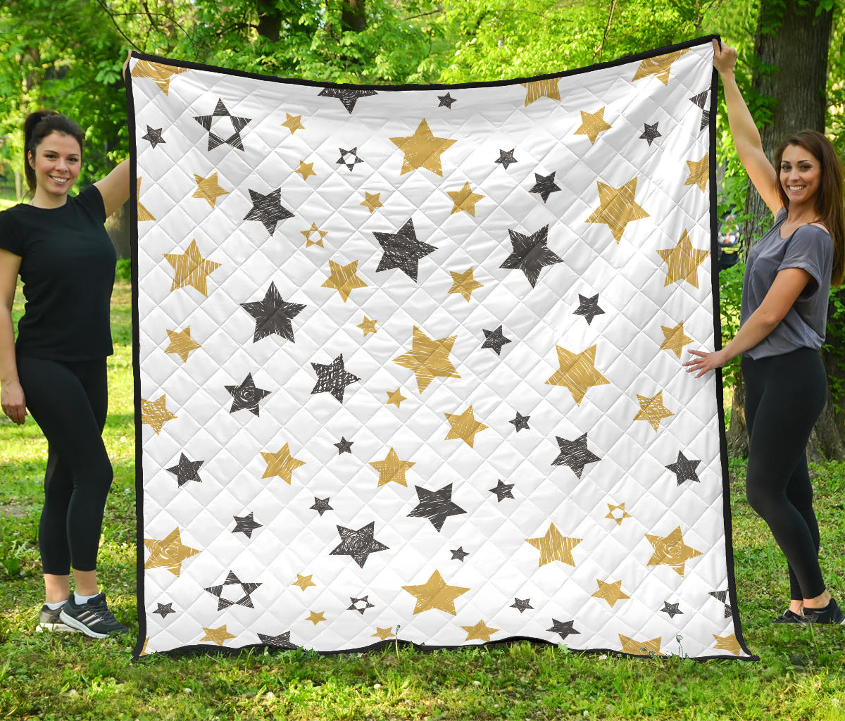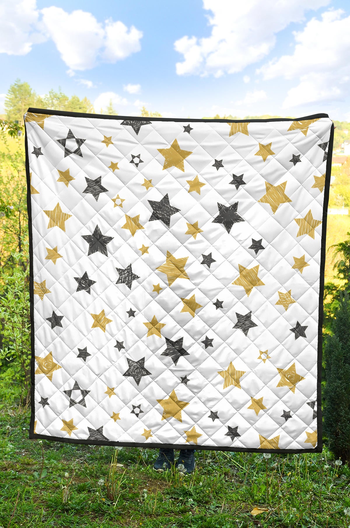 Hand Drawn Gold Black Star Pattern Premium Quilt. is a uniqued design and limited item. It made to order, hand printed, and sewn with love in our factory.