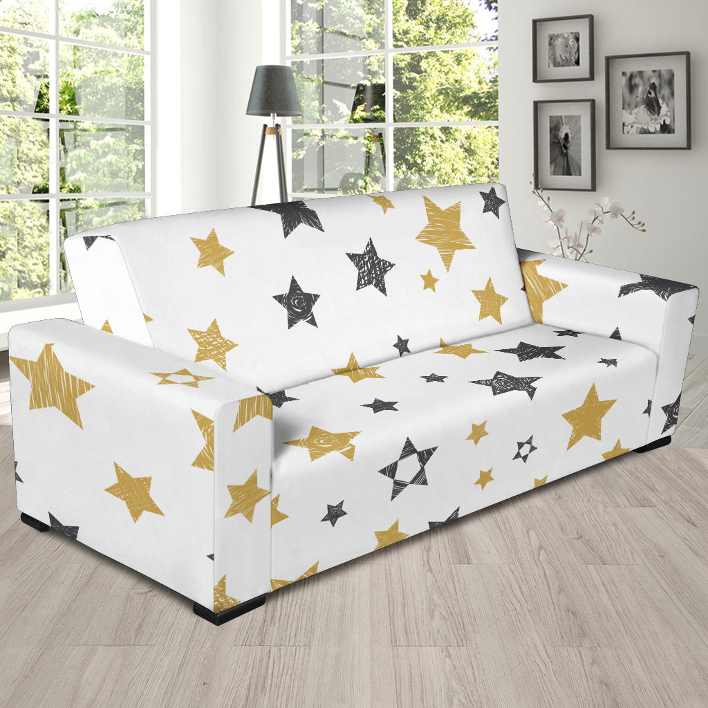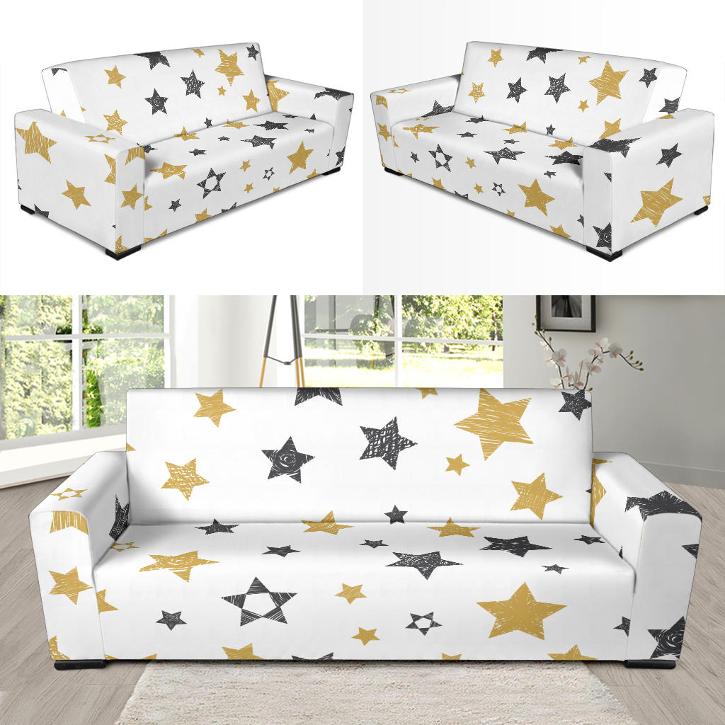 Hand Drawn Gold Black Star Pattern Sofa Slipcover