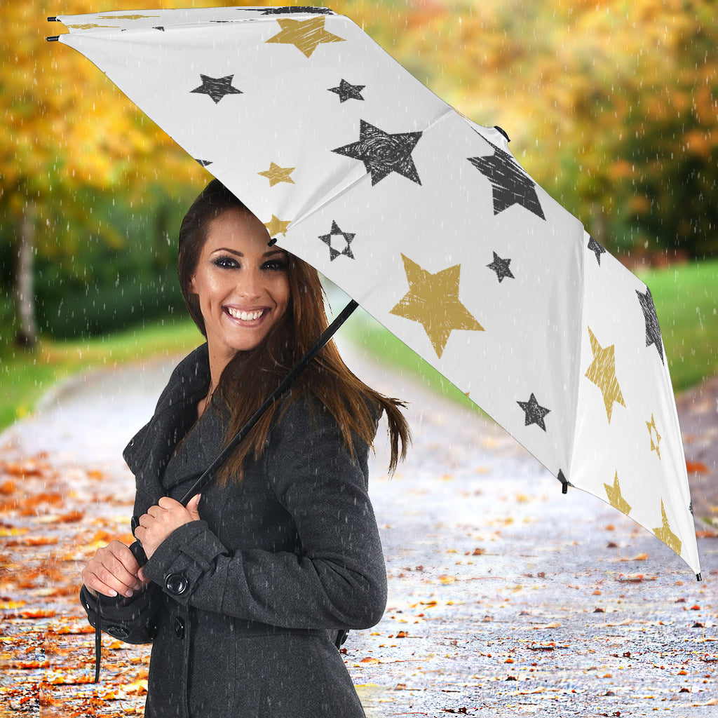 Hand Drawn Gold Black Star Pattern Umbrella