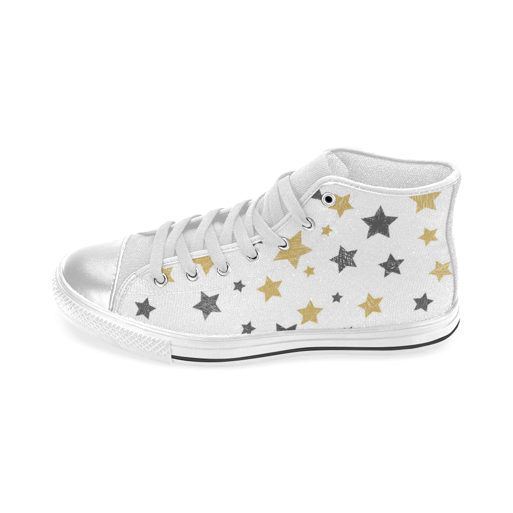 hand drawn gold black star pattern Women's High Top Canvas Shoes White