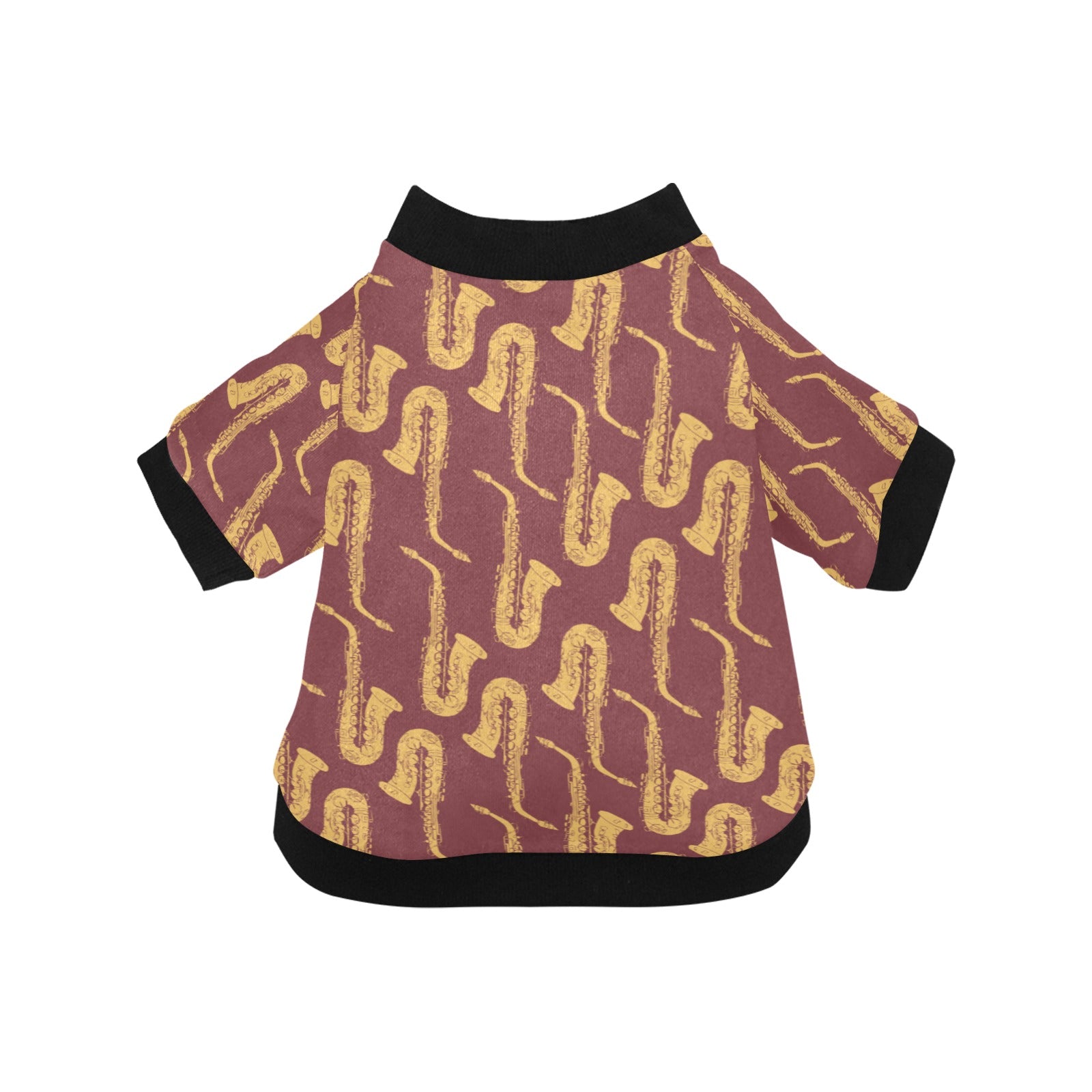 Hand drawn gold saxophone red background All Over Print Pet Dog Round Neck Fuzzy Shirt
