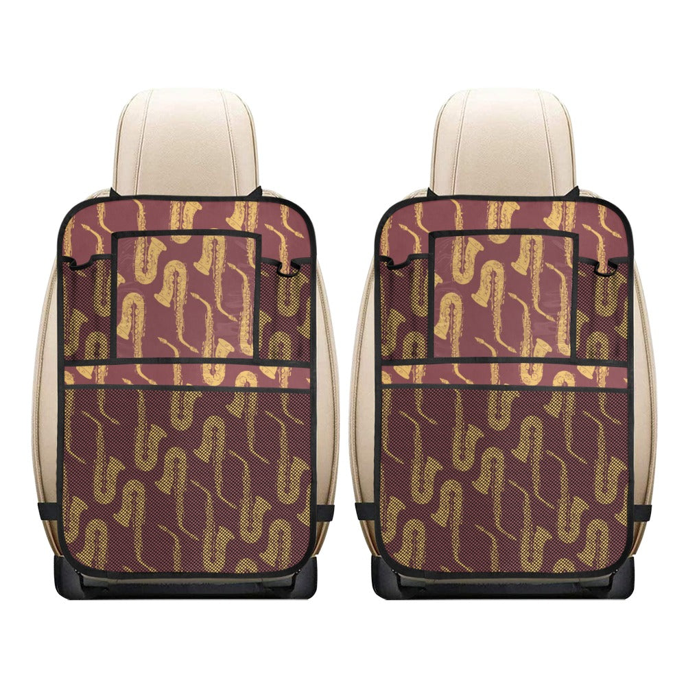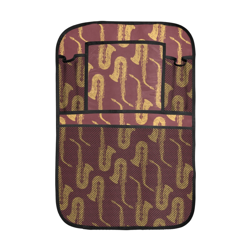 Hand drawn gold saxophone red background Car Seat Back Organizer