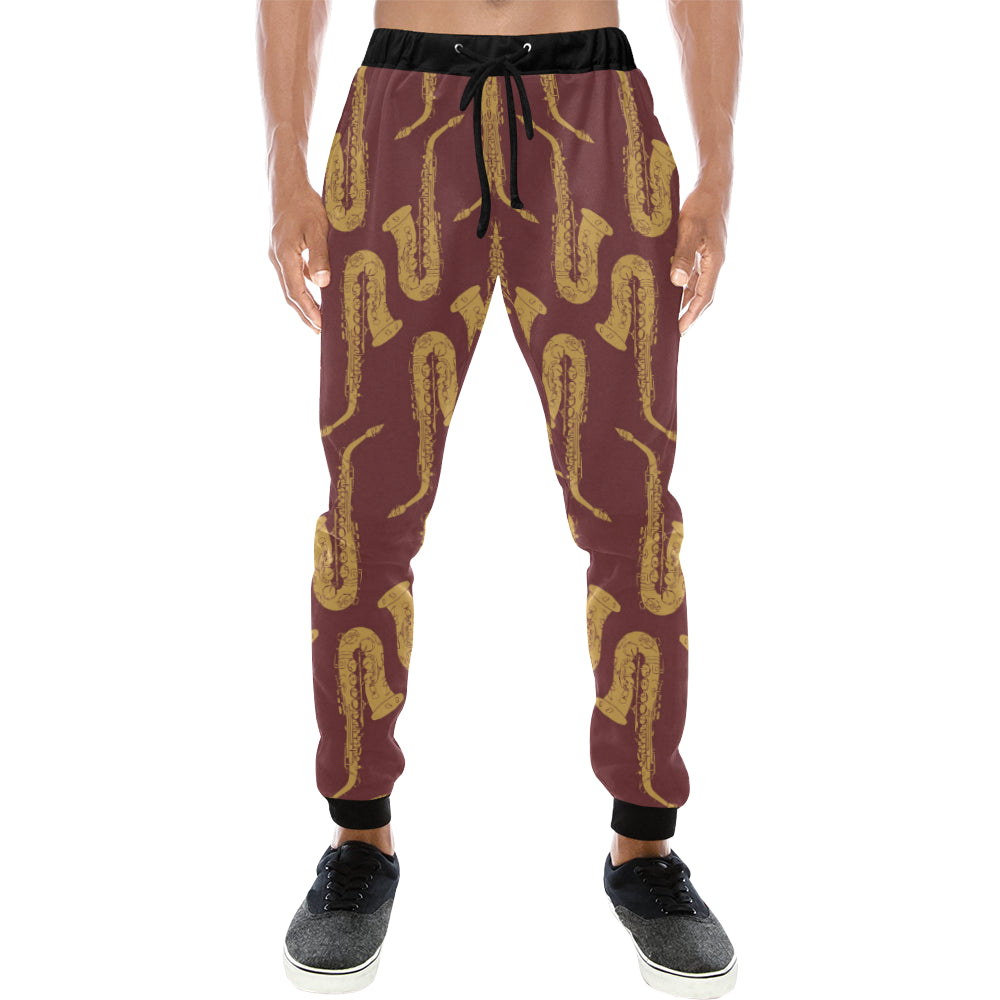 Hand drawn gold saxophone red background Unisex Casual Sweatpants