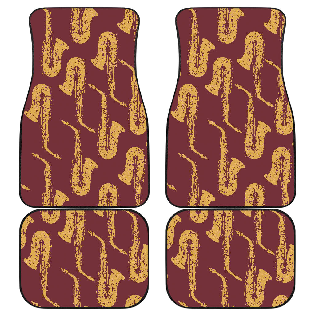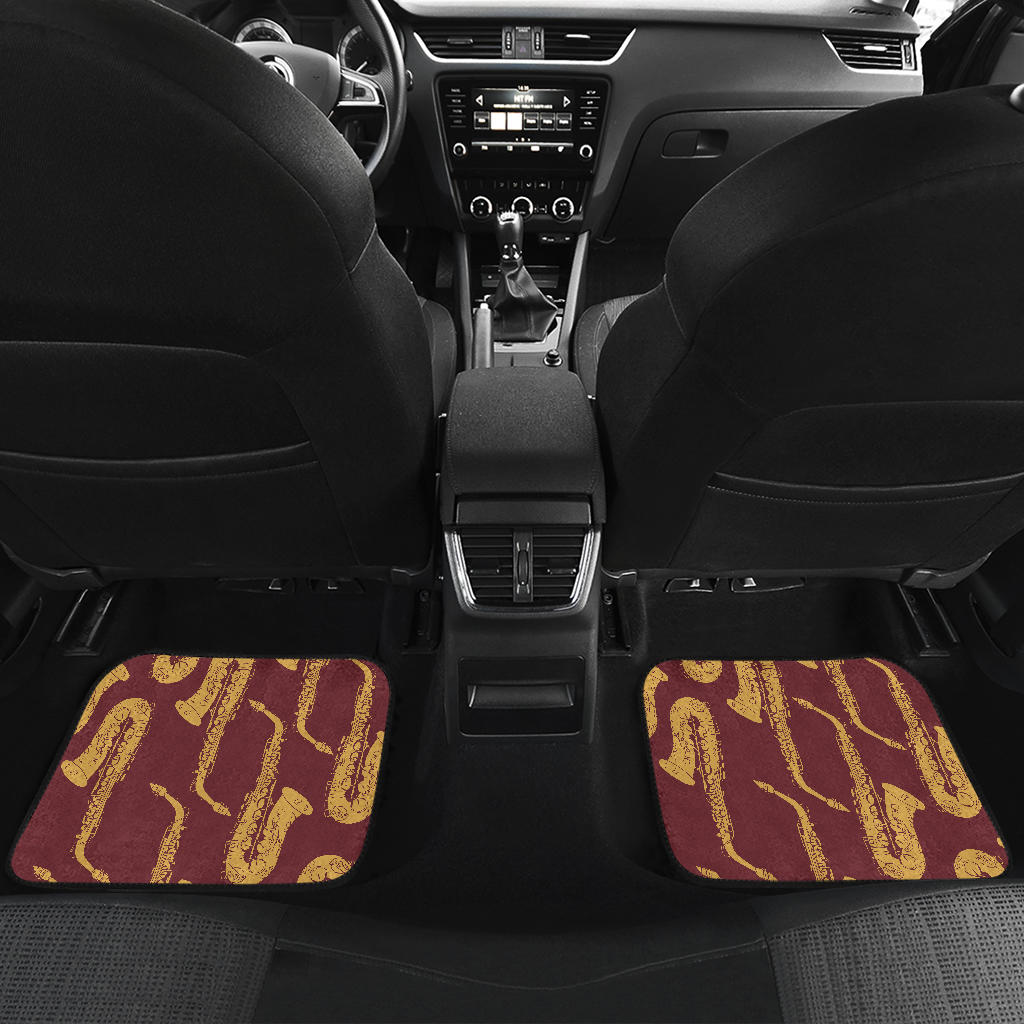 Hand drawn gold saxophone red background Front and Back Car Mats are uniqued design and limited item. It made to order, hand printed, and sewn with love in our factory.