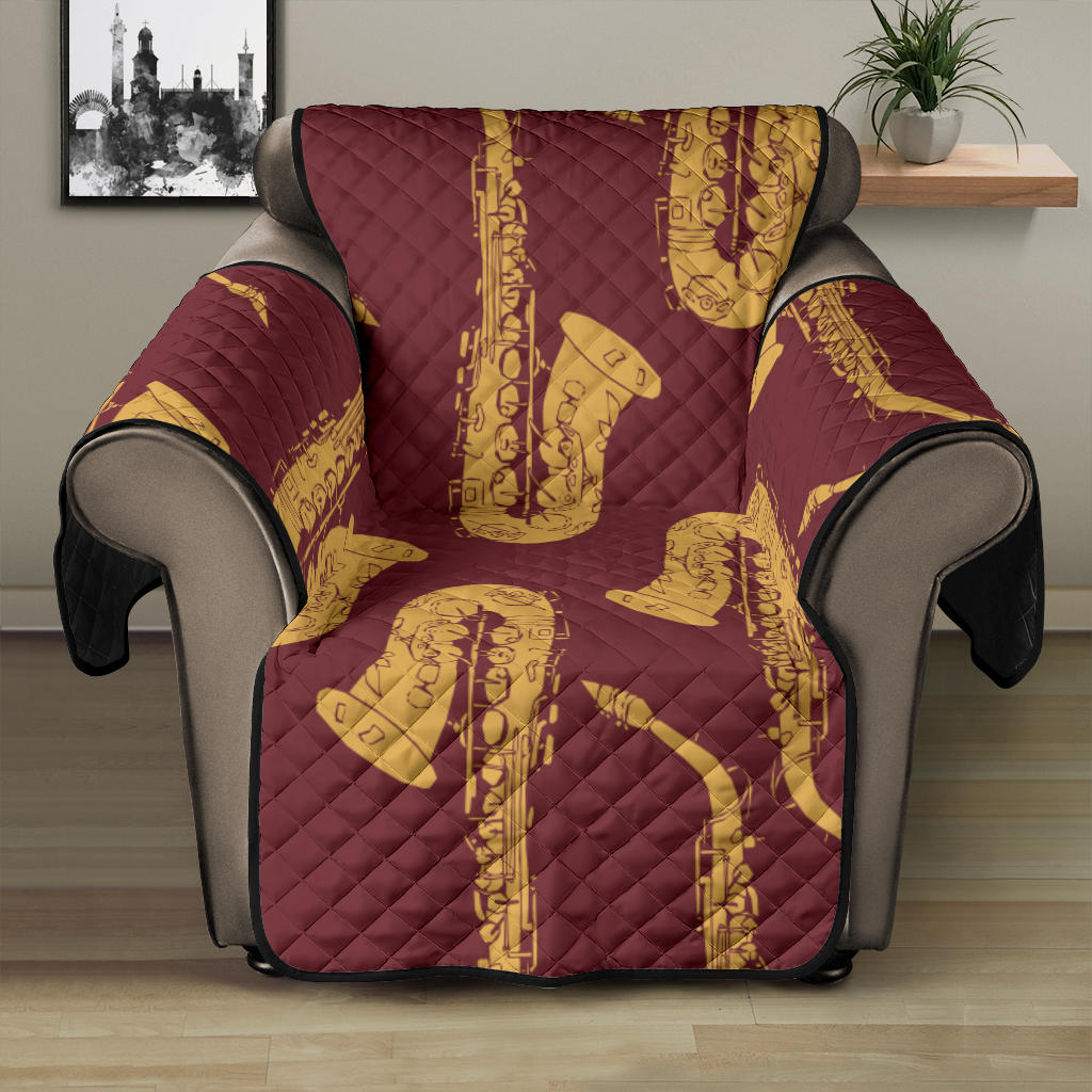 Hand drawn gold saxophone red background Recliner Cover Protector