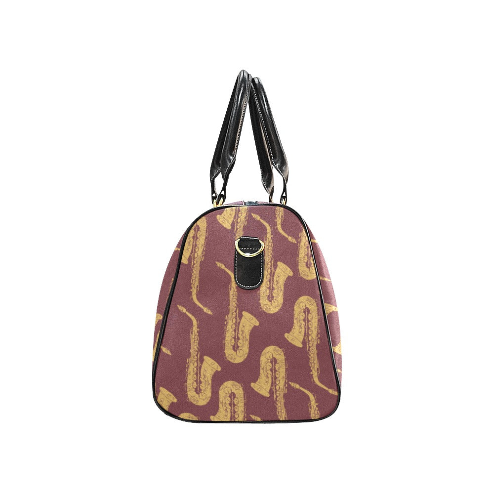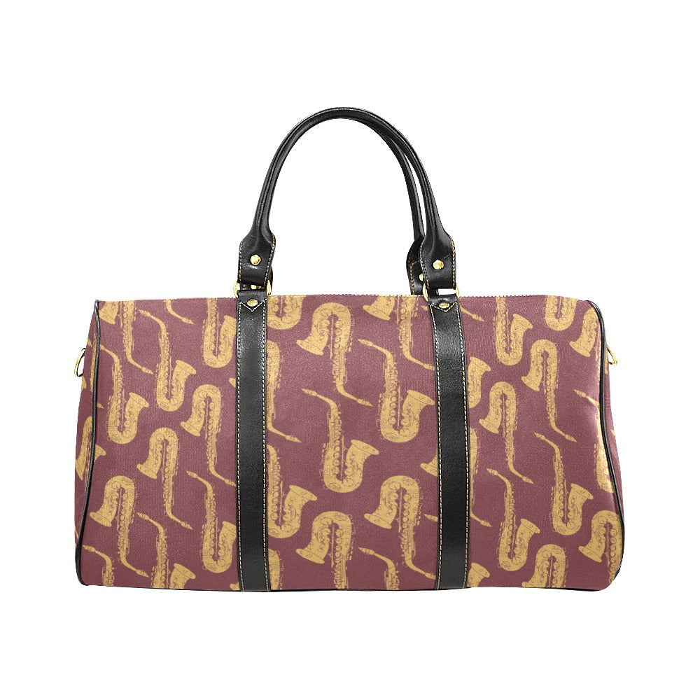 Hand drawn gold saxophone red background Travel Bag