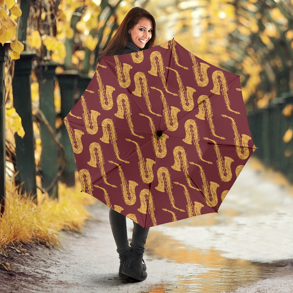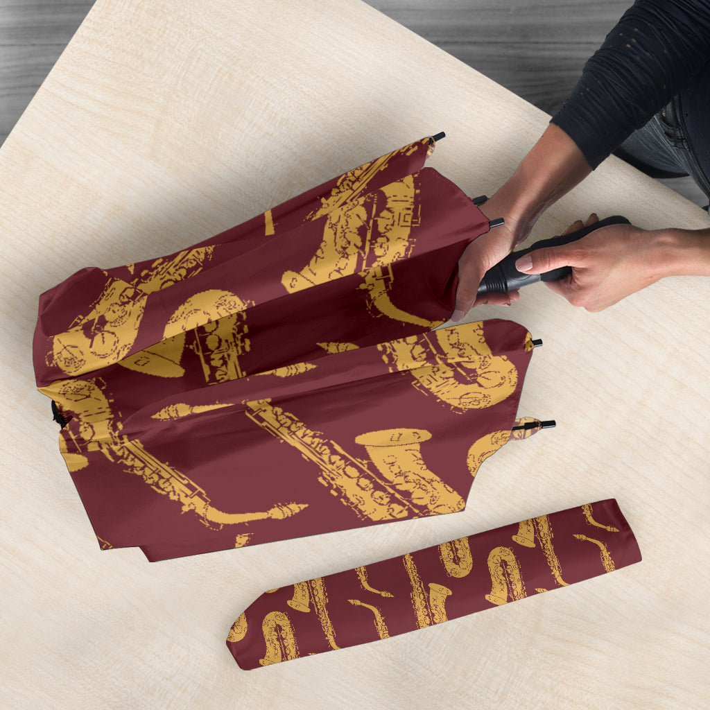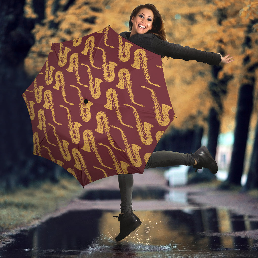 Hand Drawn Gold Saxophone Red Background Umbrella