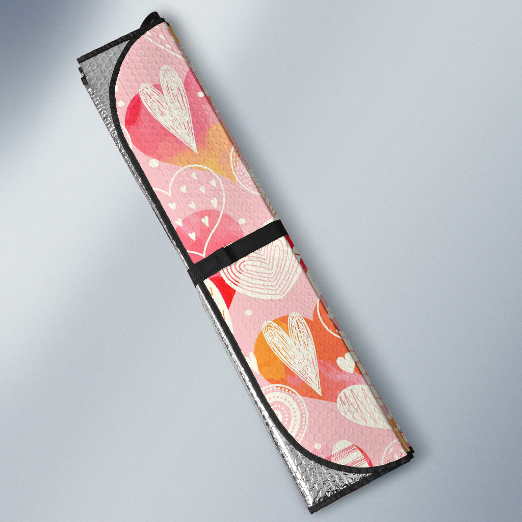 Hand Drawn Heart Design Pattern Car Sun Shade