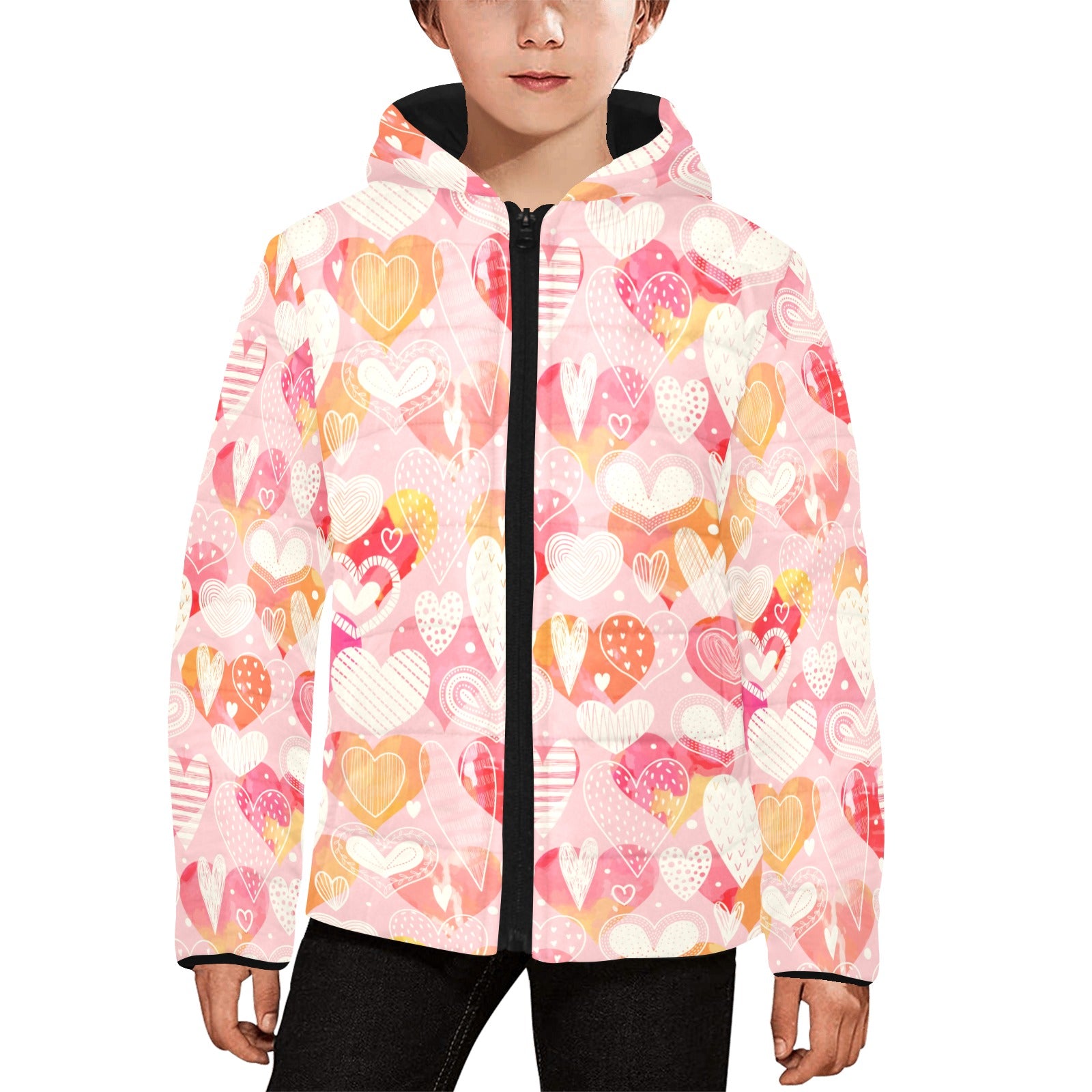 Hand drawn heart design pattern Kids' Boys' Girls' Padded Hooded Jacket