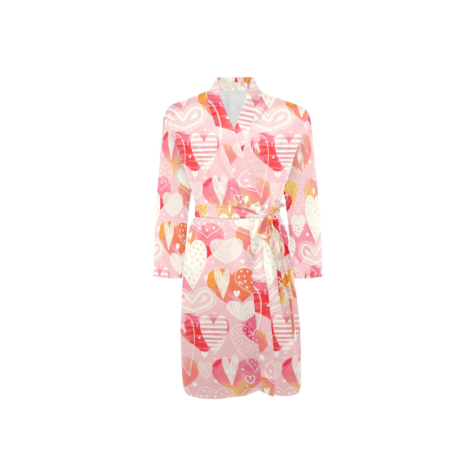 Hand drawn heart design pattern Men's Long Sleeve Belted Night Robe