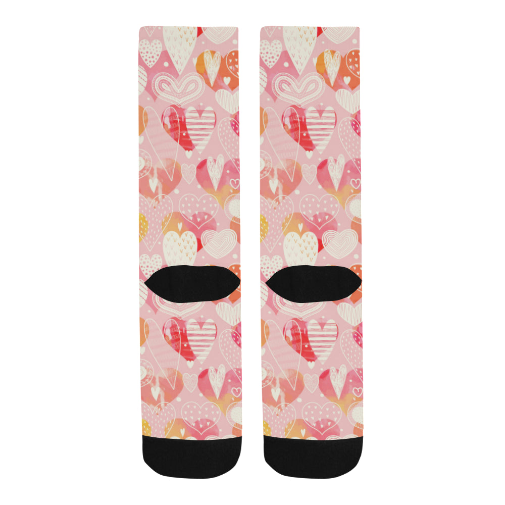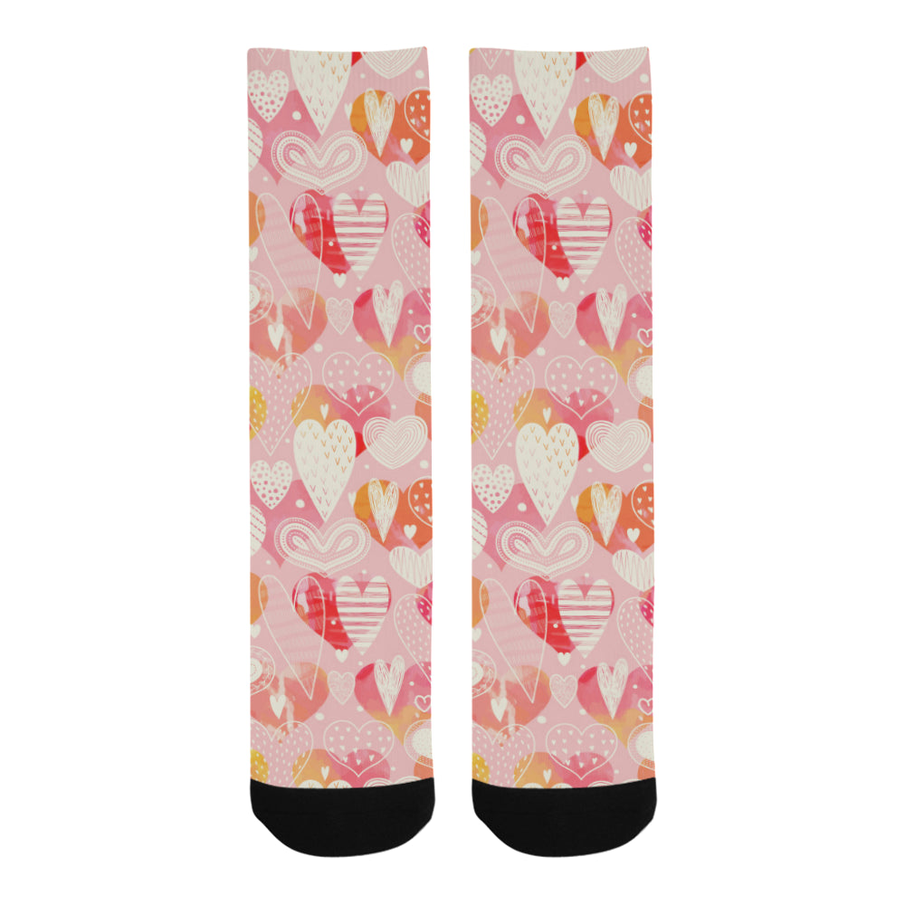 Hand drawn heart design pattern Crew Socks are uniqued design and limited item. It made to order, hand printed, and sewn with love in our factory.