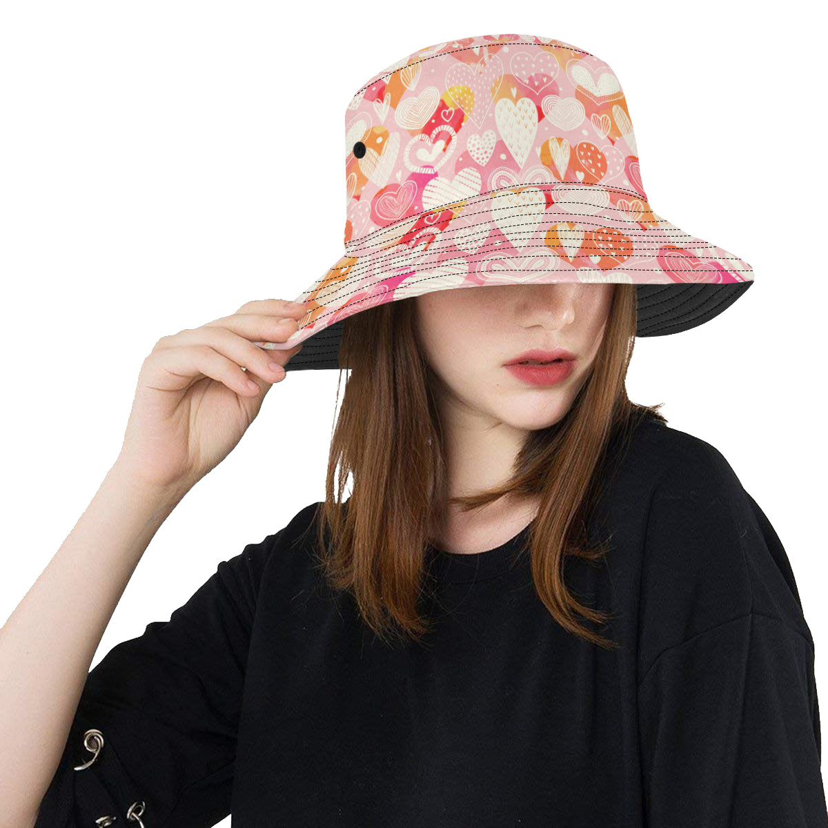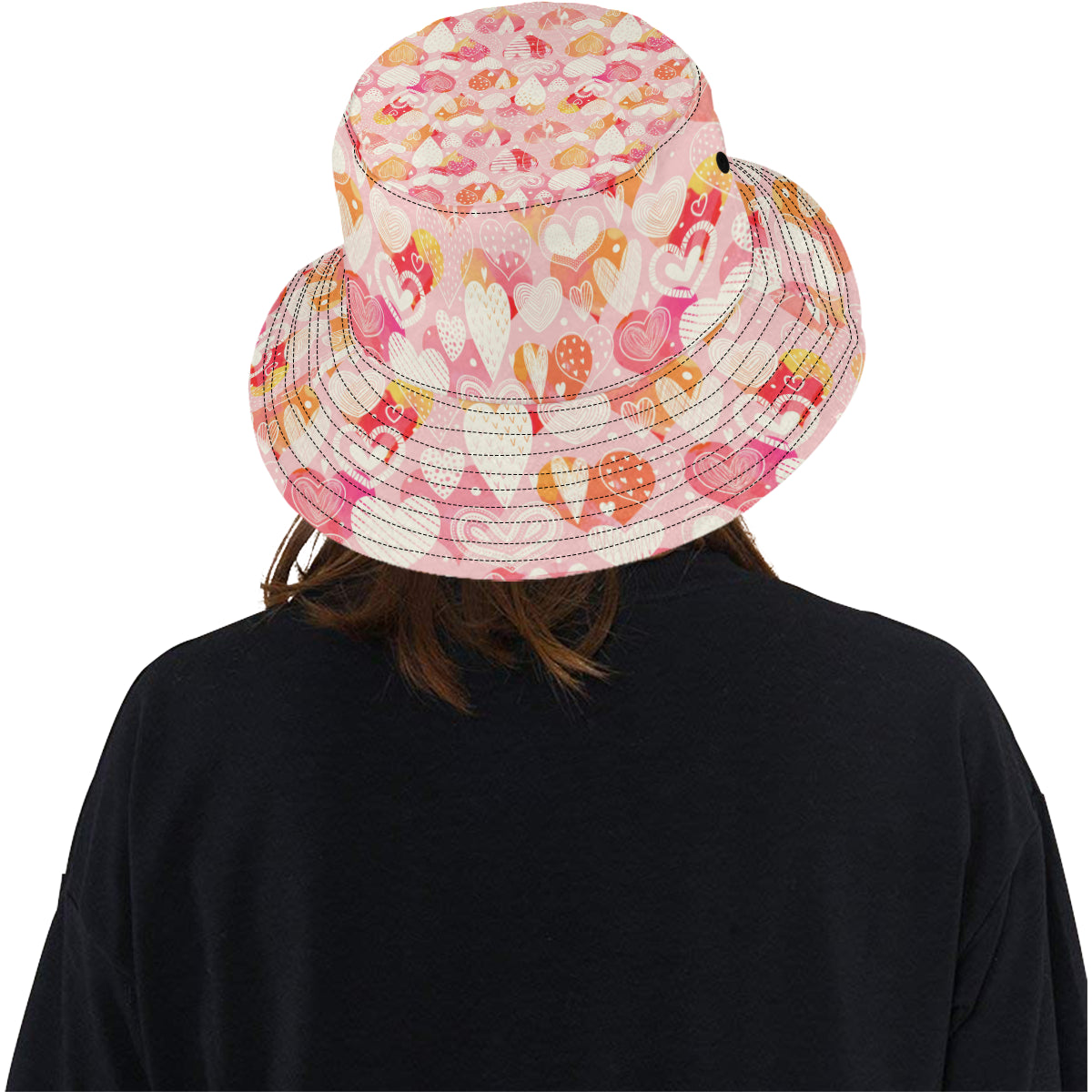Hand drawn heart design pattern Unisex Bucket Hat is a uniqued design and limited item. It made to order, hand printed, and sewn with love in our factory.