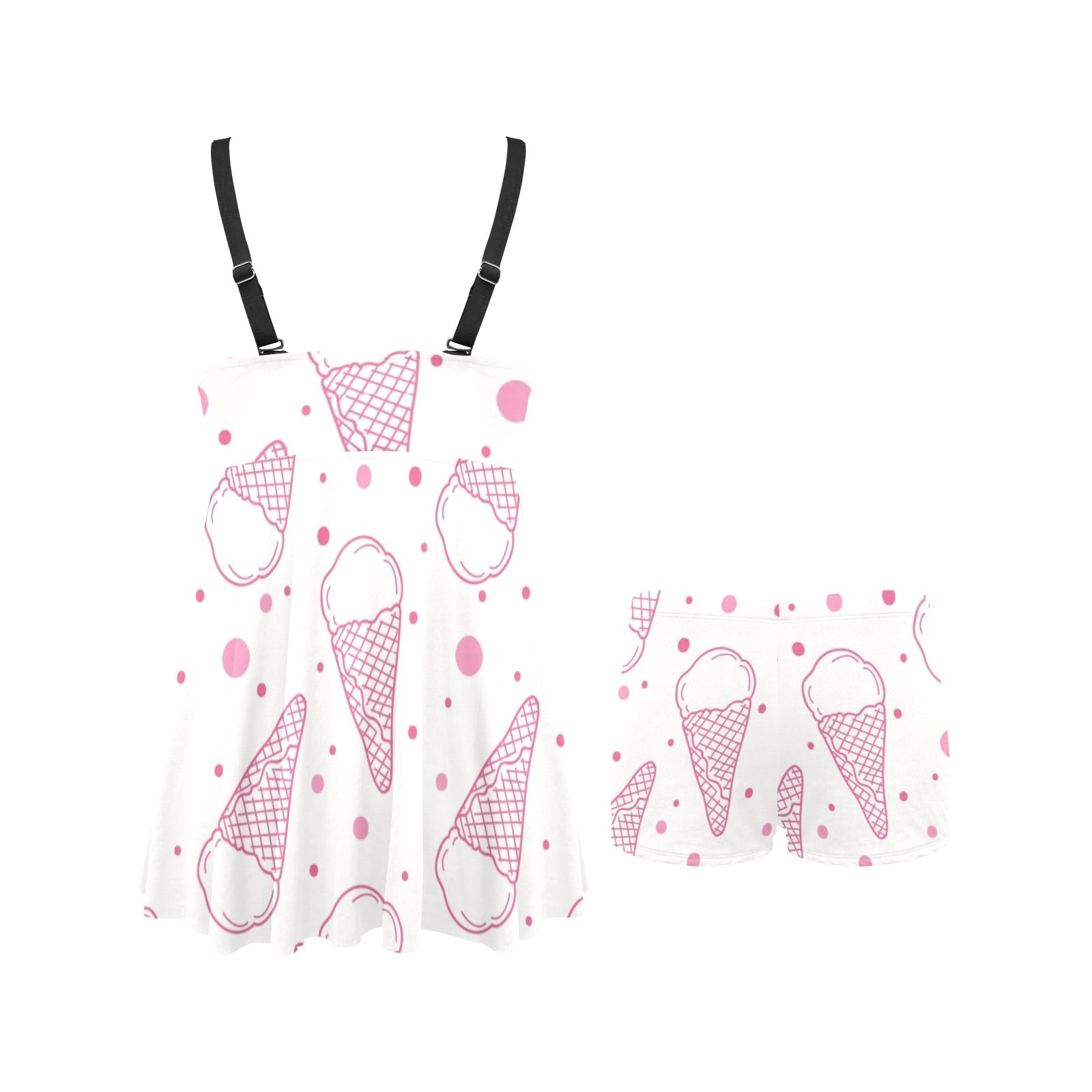 Hand drawn ice cream pattern Chest Sexy Pleated Two Piece Swim Dress