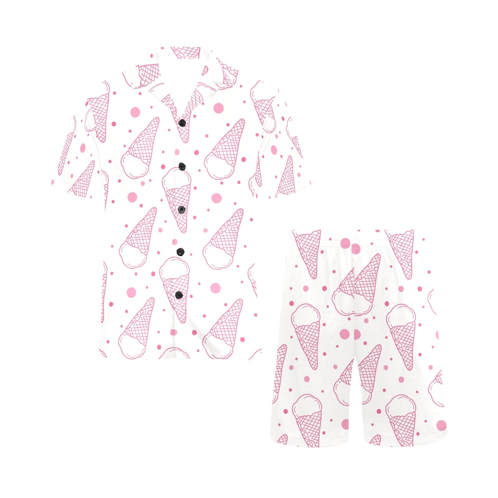 Hand drawn ice cream pattern Men's V-Neck Short Pajama Set