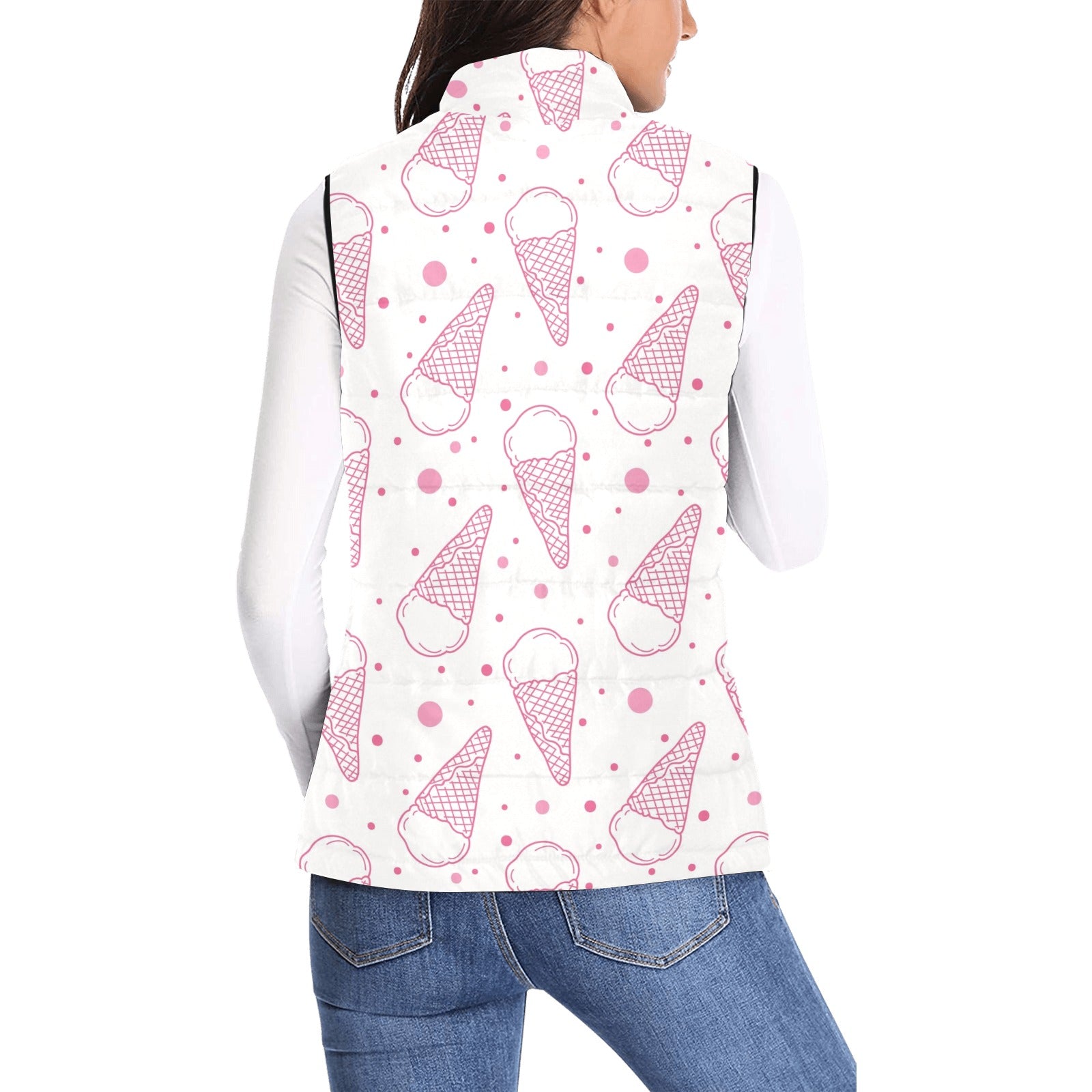 Hand drawn ice cream pattern Women's Padded Vest
