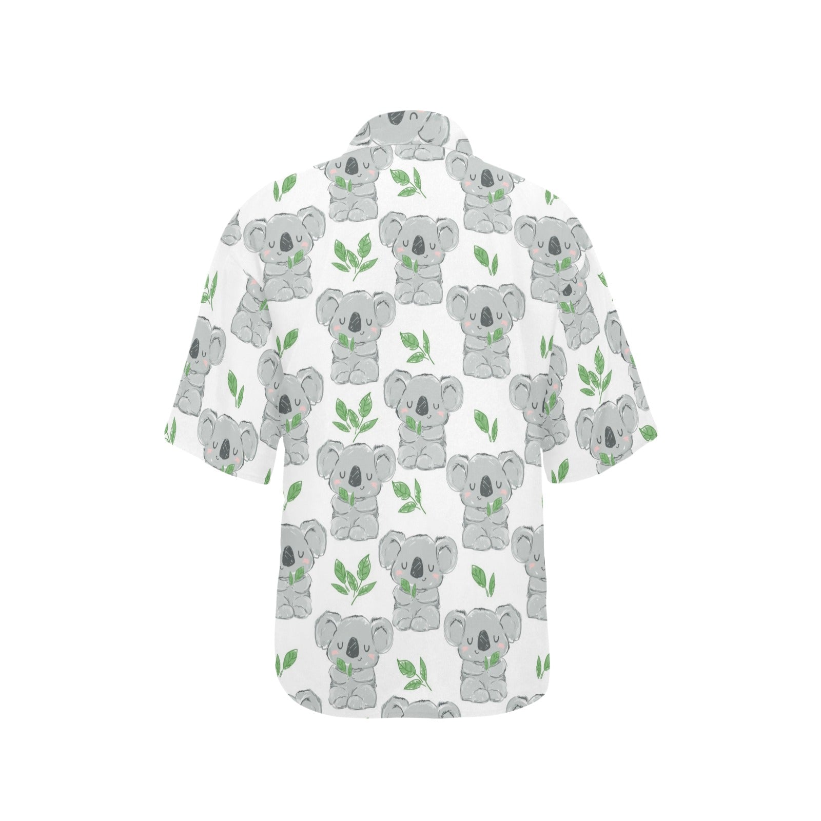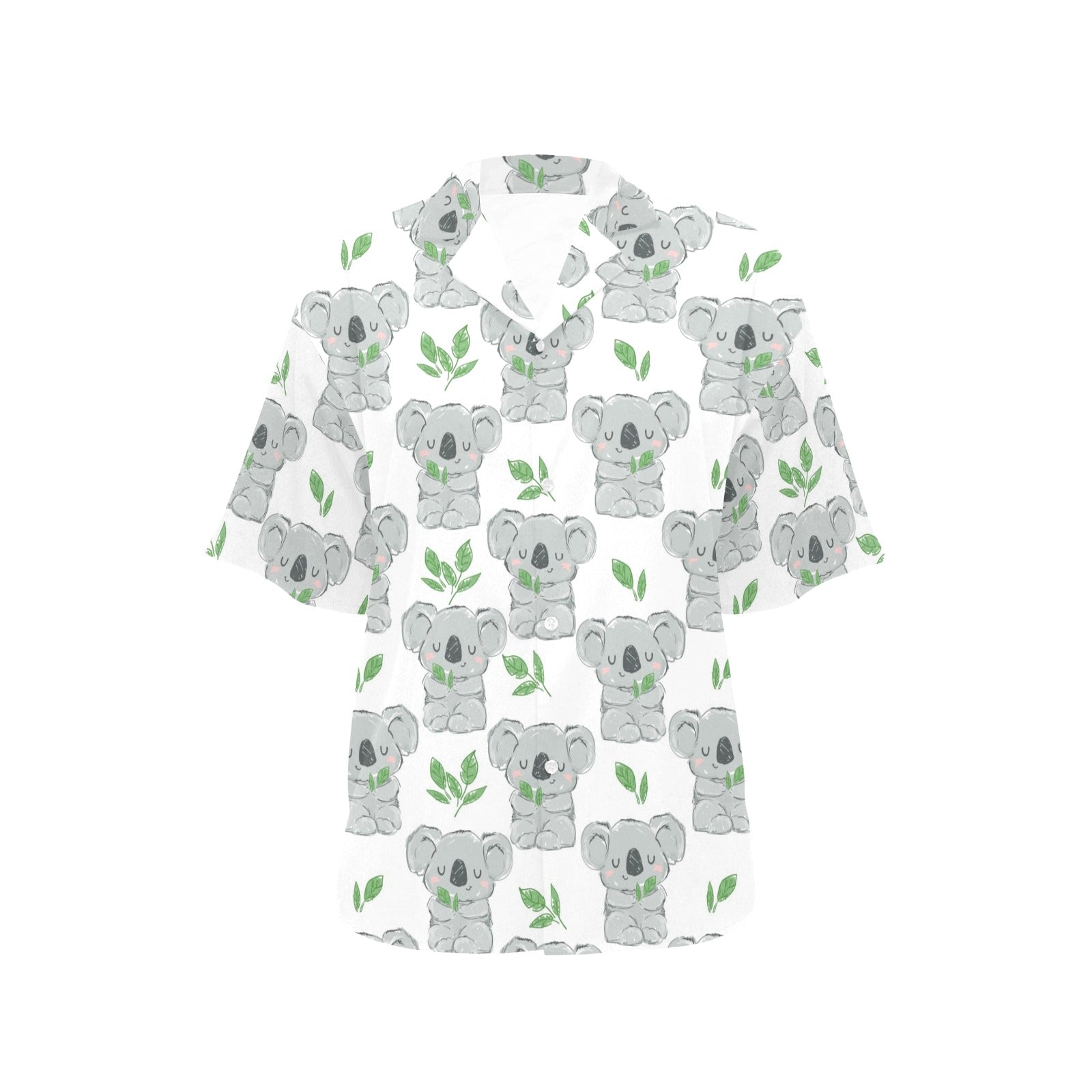 Hand drawn Koala leaves pattern Women's All Over Print Hawaiian Shirt