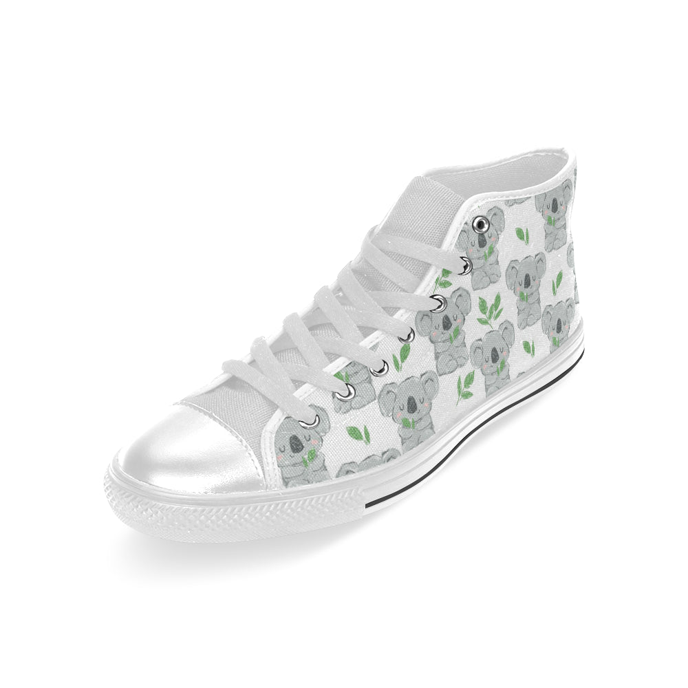 Hand drawn Koala leaves pattern Men's High Top Canvas Shoes White