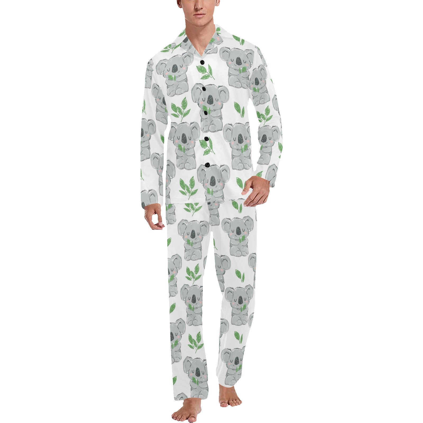 Hand drawn Koala leaves pattern Men's Long Pajama Set