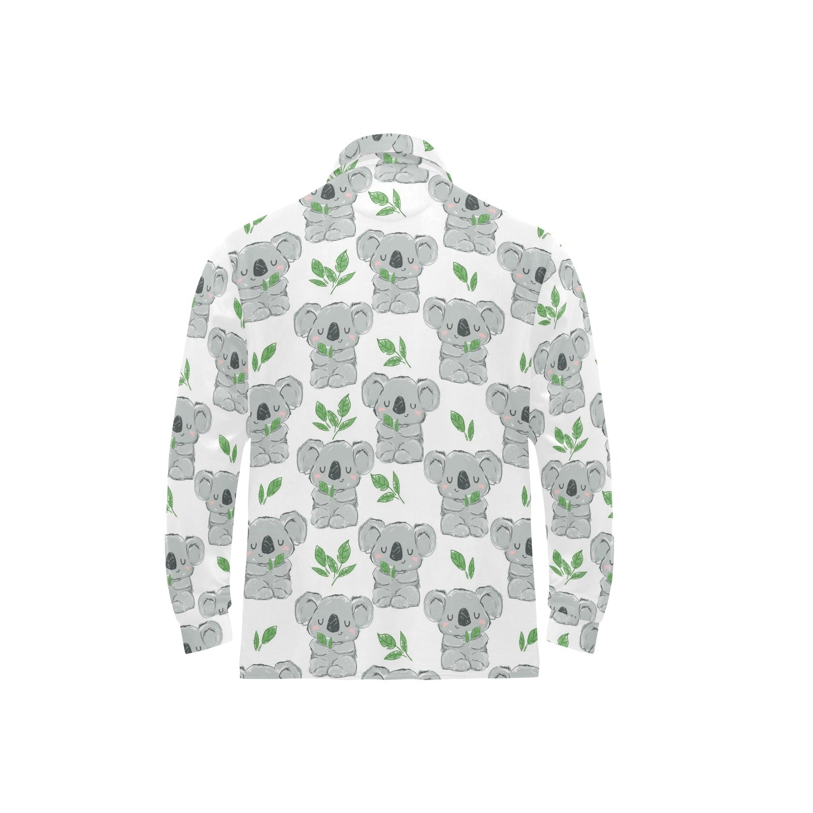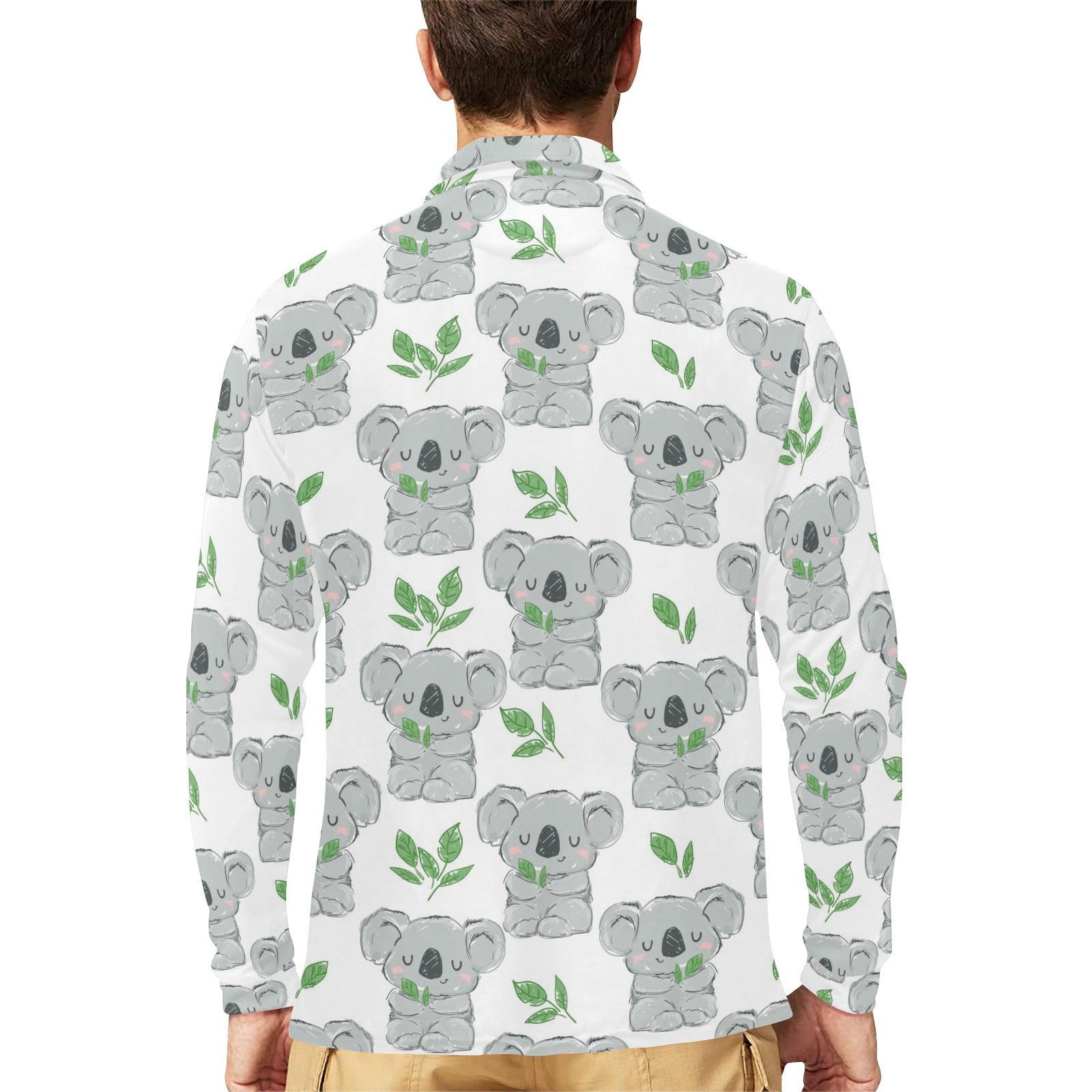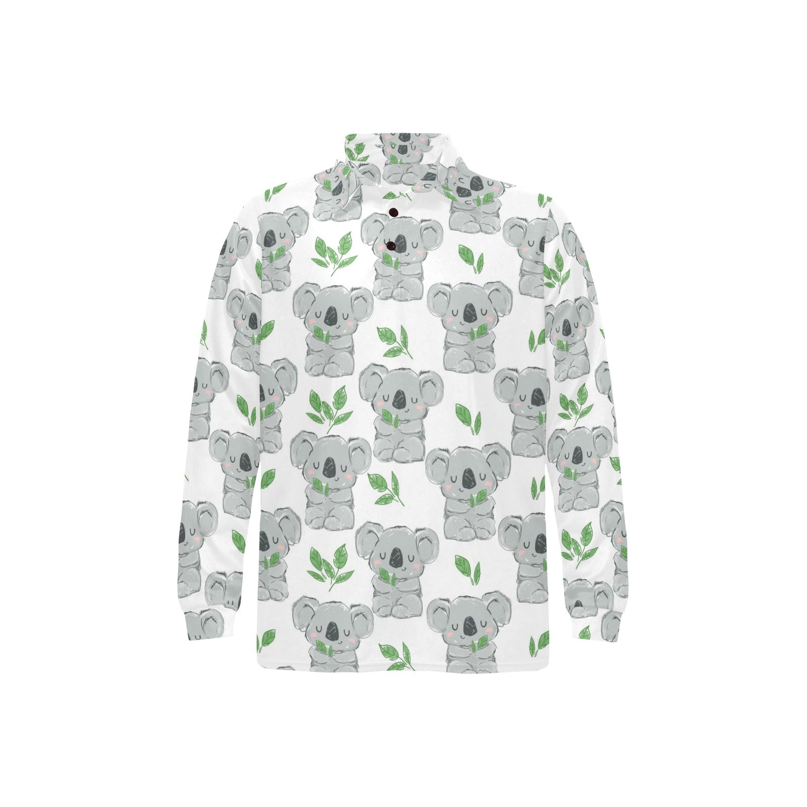 Hand drawn Koala leaves pattern Men's Long Sleeve Polo Shirt