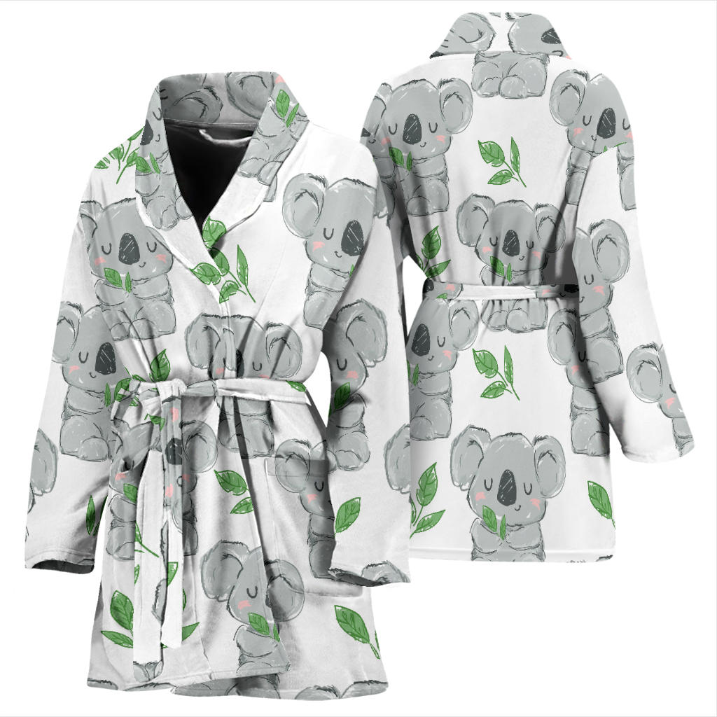Hand Drawn Koala Leaves Pattern Women'S Bathrobe