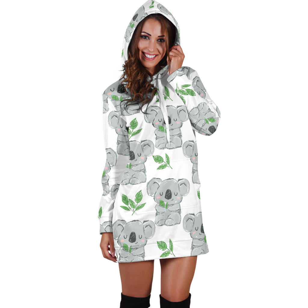 Hand Drawn Koala Leaves Pattern Women'S Hoodie Dress