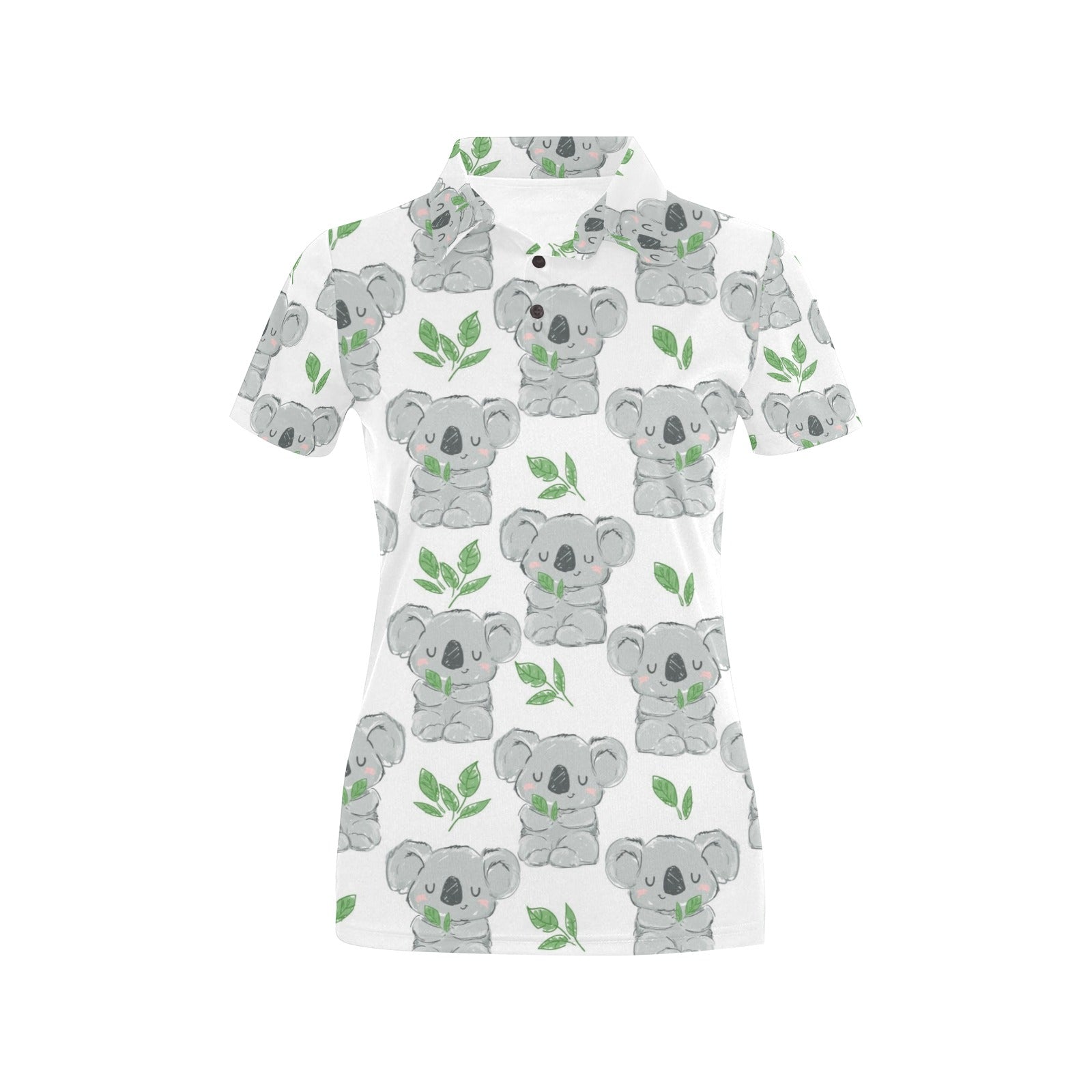Hand drawn Koala leaves pattern Women's All Over Print Polo Shirt