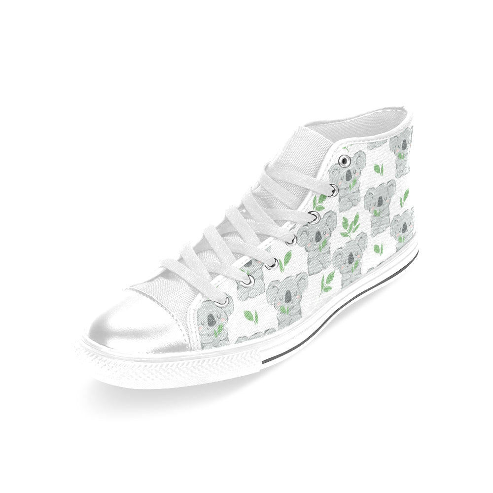 Hand drawn Koala leaves pattern Women's High Top Canvas Shoes White