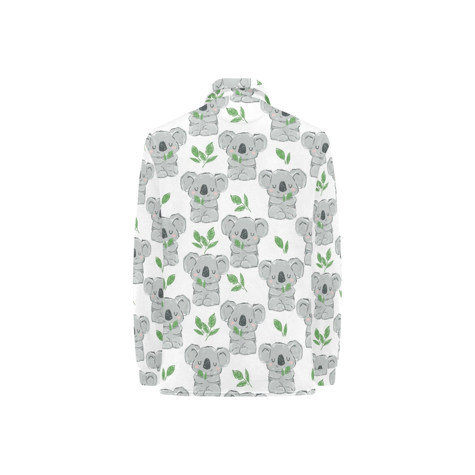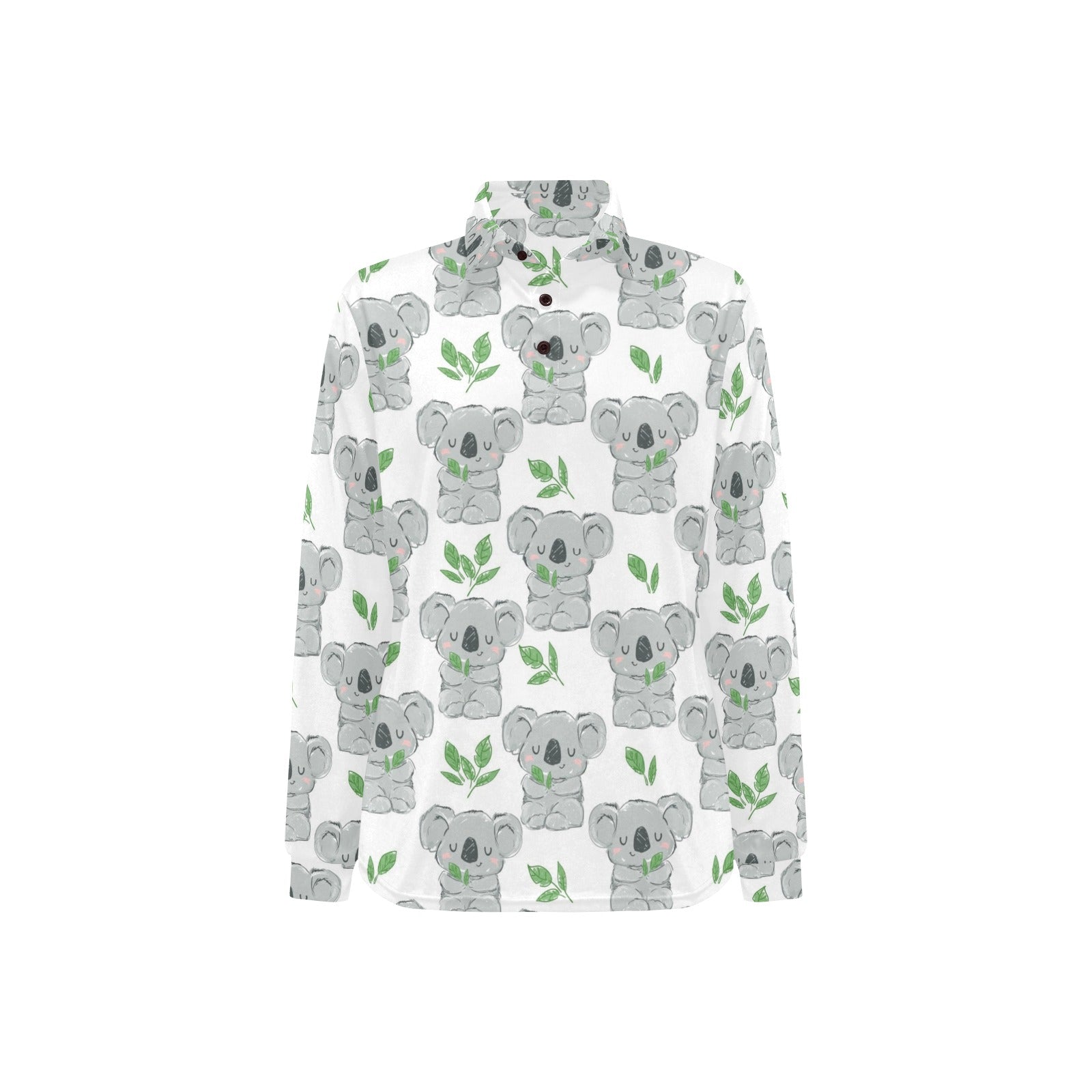 Hand drawn Koala leaves pattern Women's Long Sleeve Polo Shirt