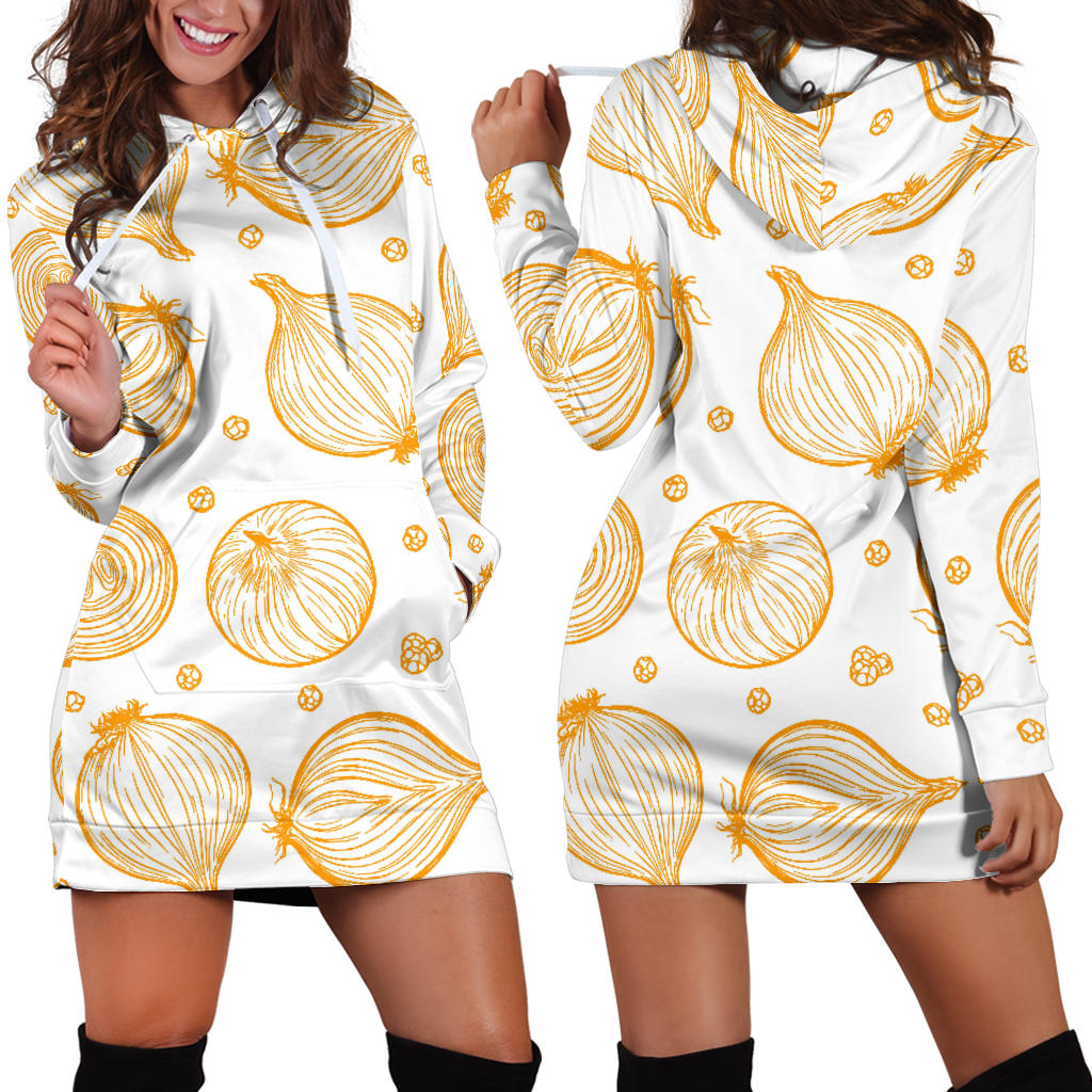 Hand Drawn Onion Pattern Women'S Hoodie Dress